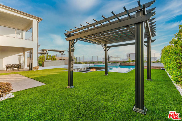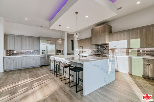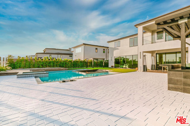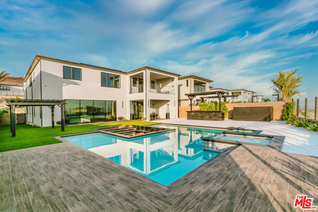 Discover an extraordinary residence at 11811 Greenwood Drive, nestled within the prestigious, guard-gated Westcliffe community in Porter Ranch, a modern enclave built by Toll Brothers. This stunning single-family home offers privacy, elegance, and exceptional design, all set on an expansive 0.25-acre lot. The thoughtfully upgraded interior features an open-concept layout filled with natural light, ideal for both everyday living and entertaining. The home includes five spacious bedrooms and five and a half bathrooms, with an upstairs primary suite offering a private balcony, spa-like bath, and walk-in closet. The backyard, a true entertainer's dream, features a resort-style setting with a new pool, new hardscape, and lush landscaping, along with a custom sunken fire pit, in-ground jacuzzi with custom lighting and wireless heating controls, covered patio, built-in pergola, and a fully equipped outdoor kitchen with barbecue, refrigerator, heating pan, and prep sink. Additional highlights include a newly constructed wine cellar, media room with projector and Sonos surround sound, private office, open-concept kitchen with oversized island, two separate garages, and over $620,000 in upgrades, including owned solar panels. Located just minutes from The Vineyards at Porter Ranch, near Sierra Canyon School and Porter Ranch Community School, and a short drive to Porter Valley Country Club, this home offers the perfect blend of luxury and convenience.