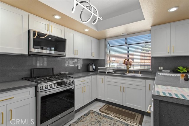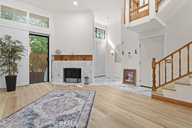Welcome to the Beautiful remodel townhome with elegant finishes in hart of Tarzana. This private Gated community offers 2 bedroom 2.5 bath. This spacious townhome is perfect blend of comfort style and convenience. Upon entry you will step in to a light and bright living room with cozy fire place and high ceiling lead you to the nice patio. Formal dinning room with wet bar. Amazing chef kitchen with Quartz counter tops recessed light stainless appliance lots of cabinets . Master suite with own fire place high ceiling large huge walking closet double sink bathroom shower and bath tub and private balcony.Plantation shutters throughout. Easy access to freeway 101 close to Ventura Blvd restaurant and shops. This unit set within a 8 unit community. The Lower level offers private room almost 300 sq ft with own closet and can be use as a 3d bedroom/ office or gym and two attached car garage. This gated split level townhome comes with low HOA dues cover trash water earthquake insurance maintenance pool and spa come and see it.