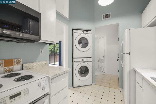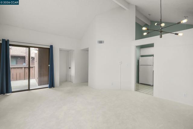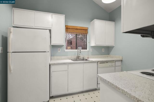 Welcome to this delightful upper-level end-unit condominium in the desirable Shadowood community of Pleasant Hill. Offering 1 bedroom and 1 bathroom, this charming retreat is filled with natural light and enhanced by soaring vaulted ceilings that create an open, airy atmosphere throughout the main living space. The inviting living room features a cozy wood-burning fireplace and opens to a private balcony patio. The galley-style kitchen offers excellent storage and has been updated with new countertops and freshly painted cabinetry, blending style and functionality while flowing seamlessly into the dining and living areas. One of the most desirable features of this home is the in-unit stacked washer and dryer — a rare convenience in this community. Additional thoughtful upgrades include a Nest thermostat for modern comfort and energy efficiency. As an upper-floor end unit, the home enjoys added privacy and abundant natural light. Proximity to the HOA community amenities makes it easy to enjoy everything Shadowood has to offer. Nearby Shadowood Park features a playground, an expansive grassy field, and a basketball hoop — perfect for outdoor enjoyment. Enjoy nearby dining, shopping, commuter routes, and everyday conveniences. Don’t miss the opportunity to call this home!