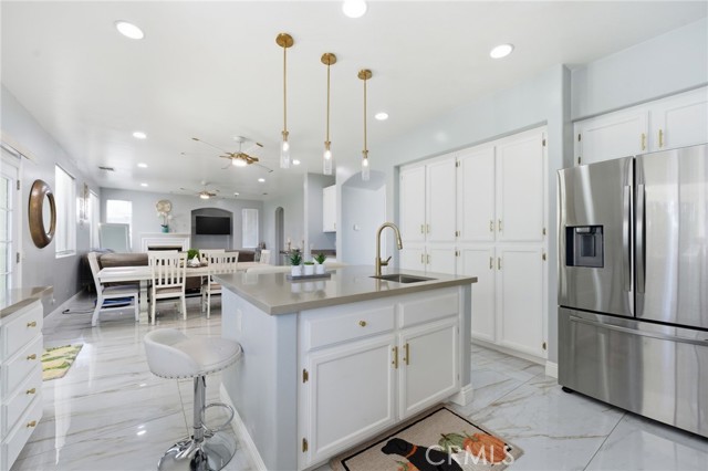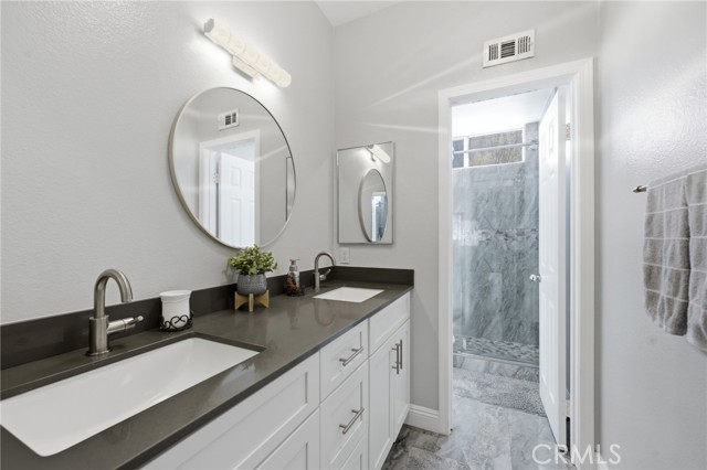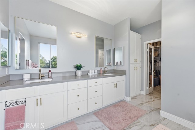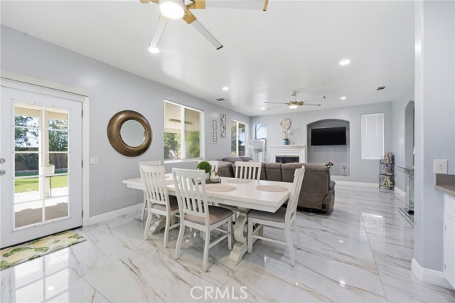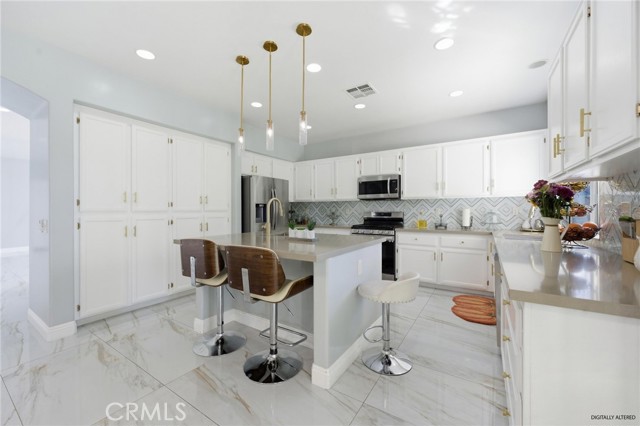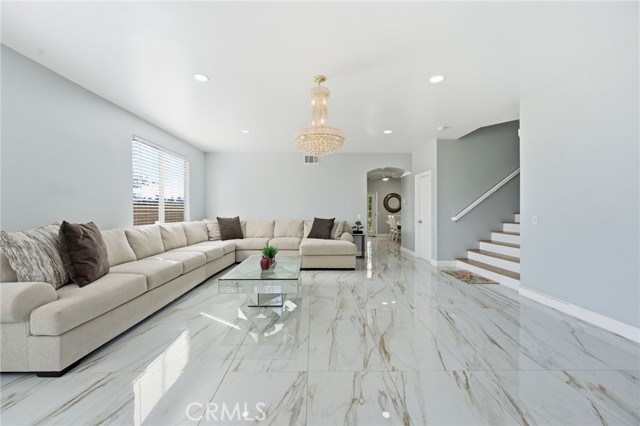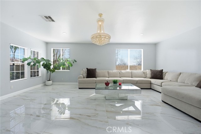 Welcome to this beautifully upgraded two-story home located in the growing city of Menifee, 25657 Corbis St, Menifee Ca. This spacious residence offers 5 bedrooms, 3.5 bathrooms, and approximately 2,887 sq ft of living space on an 8,276 sq ft lot, designed for comfort, functionality, and modern living. Step inside to an inviting open concept layout that seamlessly connects the kitchen, dining, and living areas, creating the perfect setting for entertaining and everyday living. The main floor features elegant Taj Mahal tile flooring, adding both style and durability throughout the space. The kitchen is designed to impress with marble countertops, a striking herringbone backsplash, stainless steel appliances, and a large center island ideal for gathering. A formal dining room adds additional space for hosting special dinners and celebrations. Upstairs, you’ll find generously sized bedrooms including a very spacious primary suite featuring a luxurious bathroom with a standing shower and a separate soaking tub, creating a relaxing private retreat. The home also includes an upgraded Jack-and-Jill bathroom, a formal living and family room, central heating and air, and a 3-car garage for added convenience. The low-maintenance backyard offers plenty of room to relax, entertain, or create your own outdoor oasis perfect for growing families and weekend gatherings. With its spacious layout, modern upgrades, and prime location in one of Riverside County’s fastest-growing communities. Conveniently situated between Los Angeles and Orange County and close to shopping centers, dining, parks, and everyday amenities this is an opportunity you don’t want to miss.