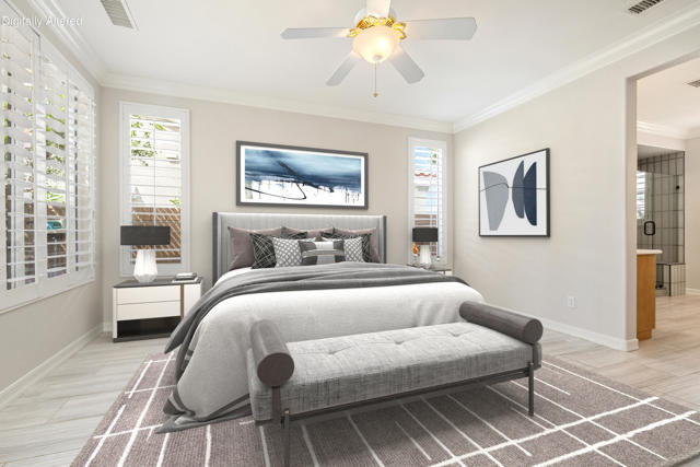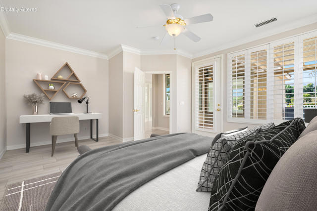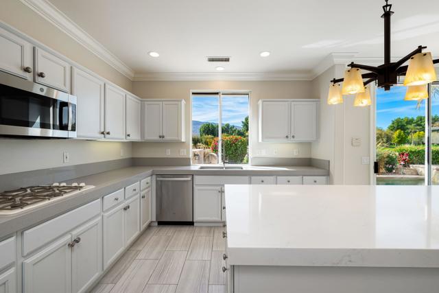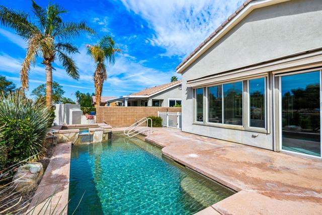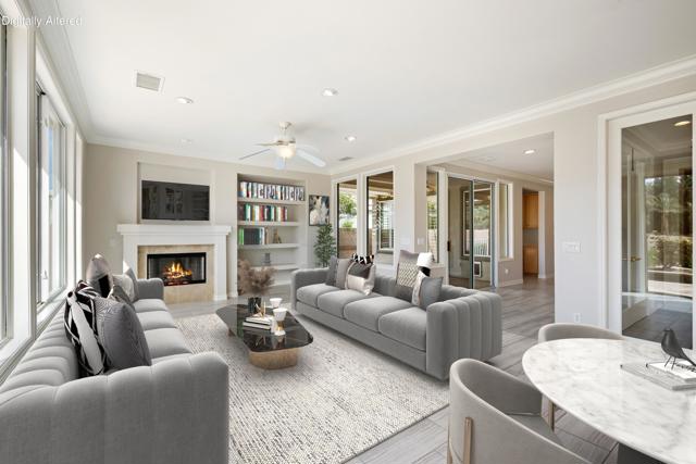 Imagine enjoying views from your own backyard of verdant fairways, a lake, majestic mountains and the awe-inspiring desert each and every day. That outstanding dream will come true in this rare and sought-after Maree residence at Trilogy, where a golf course homesite also boasts a pool, spa, built-in BBQ, retractable awning and a shady side patio. A newer solar system provides power to the home, which extends approx. 1,771 s.f. over 1 level and features a courtyard entry with covered porch, 2 bedrooms, 2 baths, an den/office with interior French doors, a fireplace-warmed great room with built-in media niche, high ceilings, plantation shutters throughout, designer paint, crown molding and ceiling fans. Enjoy entertaining in an open kitchen with dining area, walk-in pantry, island with bar seating, granite countertops and deluxe appliances. Step onto the patio from a master suite complete with sitting area, walk-in closet, dual vanities and a shower with seat.