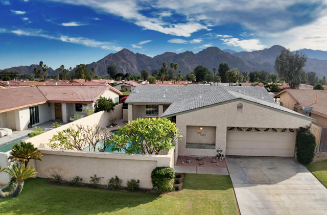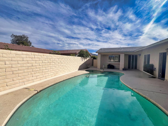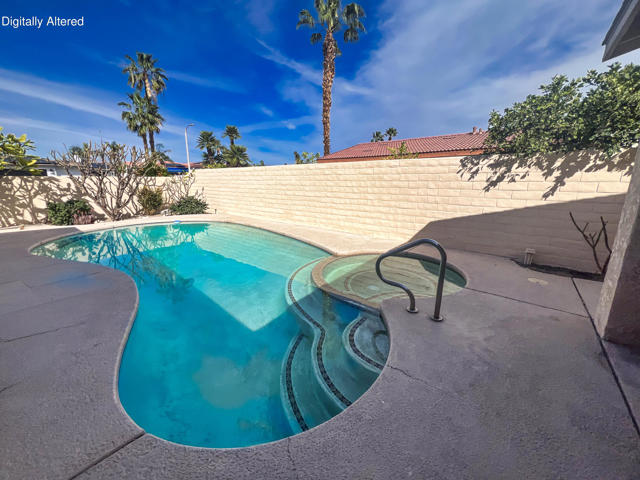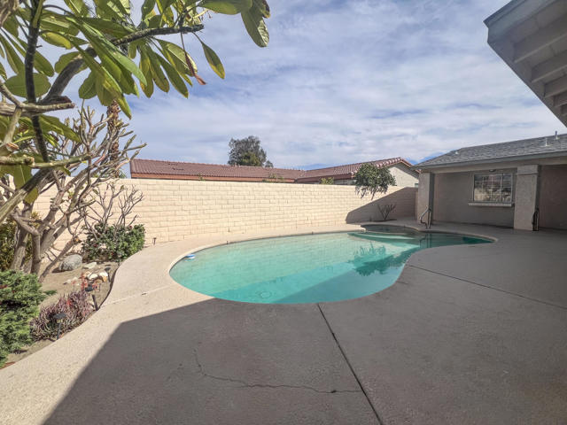 Expanded and beautifully designed home with open floor plan, this panoramic mountain view home offers southern exposure, exceptional indoor-outdoor living, and a sparkling pool and spa in sought-after Palm Desert Country Club -- with NO HOA. A private, walled courtyard welcomes you with a resort-style pool and spa, plus shower setting the stage for relaxed desert living. Inside, soaring vaulted ceilings and a custom fireplace define the expansive great room, complete with a wet bar and seamless flow for entertaining. Walls of glass frame breathtaking south and west mountain views enjoyed from the living room, kitchen, Florida sun room, and primary suite. A total of 3 bedrooms, 2 full baths.The expanded living room and generously sized primary suite showcase stunning vistas and abundant natural light. Primary BR enlarged on the south side which also resulted in a large walk in closet plus safe. Bedrooms and baths just freshly painted plus new ceiling fans.The sun room offers flexible space for lounging, hosting, or creating a peaceful retreat. Overlooking the pool, the kitchen allows you to serve guests with ease or keep an eye on outdoor activities. A secondary bedroom with direct pool access is perfect for guests or an inspiring home office.The south-facing patio captures panoramic mountain views and spectacular desert sunsets, while the oversized 21/2-car garage provides ample space for a golf cart, storage, or workshop area. Ideally located on a well-maintained street with pride of ownership, just minutes from shopping, dining, and convenient freeway access.