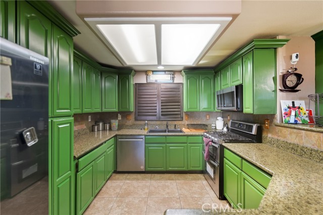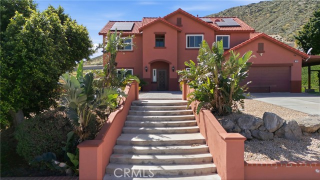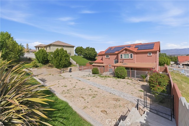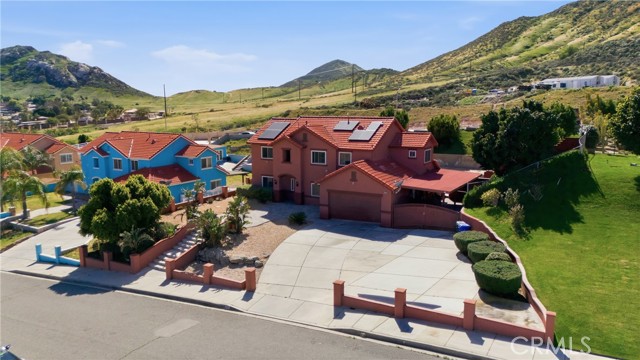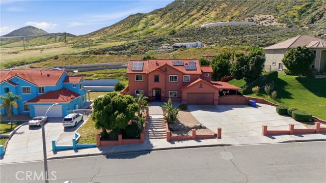 Welcome to this beautiful Mediterranean-style home at 11970 Walnut St. in the heart of Bloomington. Built in 2004, this spacious 2,738 sq. ft. residence sits on a nearly half-acre lot and offers a rare combination of mountain views, modern comfort, and expansive outdoor space. With 5 bedrooms and 4 full bathrooms, the thoughtfully designed layout is ideal for multigenerational living. The main level features a bright living room filled with natural light, a private primary suite with granite countertops, two additional bedrooms with a shared dual-sink bathroom, and an indoor laundry room with direct access to the attached two-car garage. Upstairs offers an open-concept kitchen with granite countertops and abundant cabinetry that flows into a spacious family and dining area with tile flooring—perfect for everyday living and entertaining. Two oversized upstairs bedrooms each include their own private full bathroom, providing excellent separation for next-gen living arrangements. Step outside to a massive backyard with a large covered patio and terraced access to an elevated portion of the lot with sweeping mountain and city views—offering potential for an ADU, outdoor retreat, or additional entertainment space. The home also features solar, helping improve energy efficiency and reduce utility costs. Additional highlights include rear gated access, an extended driveway, and RV parking. Don’t miss this unique opportunity to own a spacious home with incredible potential—schedule your private showing today.