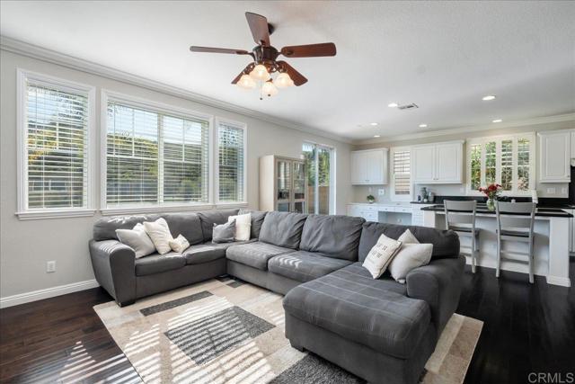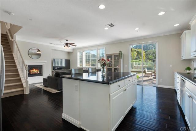 Situated in the highly sought-after community of Lake Rancho Viejo, this move-in ready home offers refined comfort in a peaceful, scenic setting. Designed with an open, light-filled floor plan, the home blends spaciousness with effortless functionality. The kitchen flows seamlessly into the main living area, creating an inviting space ideal for entertaining and everyday living. The backyard captures expansive views, offering a beautiful natural backdrop and a sense of privacy that sets this home apart. Upstairs, a generous loft provides flexible space for a media room, home office, or additional lounge area. The primary suite serves as a true retreat, featuring two walk-in closets and a spacious bath where you can soak in the tub while taking in serene views. An oversized garage adds versatility with room for a home gym, workshop, or additional storage. Residents of Lake Rancho Viejo enjoy access to walking trails, parks, and a central lake, all conveniently located near I-15 and Highway 76 for easy access to shopping, dining, and North County amenities. A turnkey opportunity offering space, views, and lifestyle in one of Fallbrook’s most desirable communities.