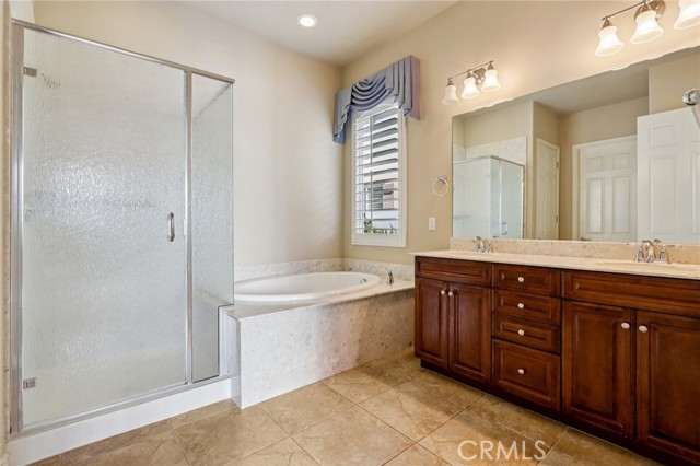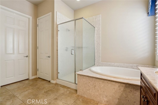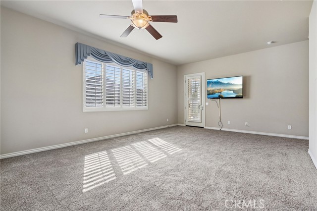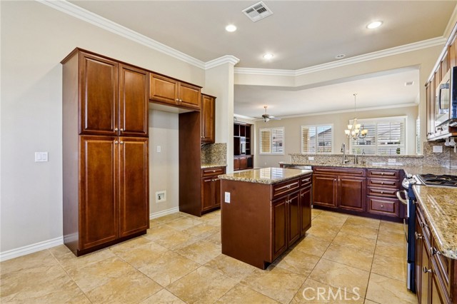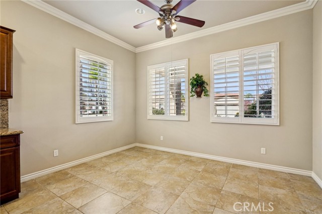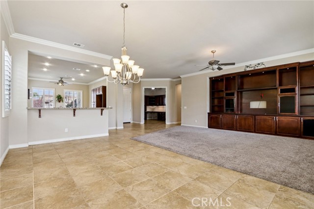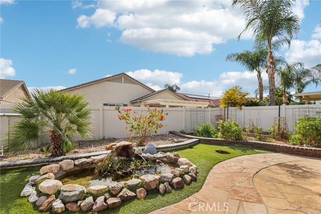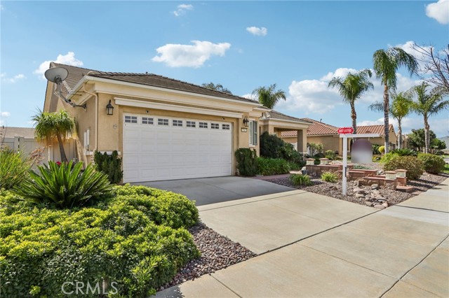 Welcome to Resort-Style Living in the 55+ Community of Solera Diamond Valley by Del Webb! This beautifully upgraded 55+ residence combines thoughtful design with comfort and convenience, offering a one-of-a-kind opportunity in Hemet’s premier active adult community. From the moment you arrive, you’ll notice the care and attention poured into every detail. Step inside to find elegant crown molding, plantation shutters, and custom cabinetry throughout the living room, office, craft room, laundry, and master bath. The tiled living room floor with carpet overlay gives you the flexibility of enjoying both tile and carpet. The kitchen is a true chef’s delight, featuring under-cabinet lighting, and a water filtration system. The air-conditioned garage offers exceptional functionality with a built-in workbench, storage racks, and generous space for a second refrigerator and freezer. Outside, you’ll love the xeriscape front yard with river rock, rain gutters, and a welcoming front gate and patio. The backyard is a private retreat, complete with a little fish hole, flagstone paving, bullnose edging, and drip irrigation for effortless maintenance. A dog door adds convenience for pet lovers, while the outdoor storage shed provides extra space for tools and hobbies. Comfort and peace of mind are built in with steel security screen doors, an all-house fan, and a comprehensive exterior surveillance system featuring eight cameras with night vision, motion detection, infrared augmentation, and a large monitor with two-week memory storage. In the master bathroom, you’ll appreciate the step-in shower and thoughtfully placed grab bars for ease and safety. Custom under-cabinet lighting in both the kitchen and office adds style and function. This is not just a home—it’s a lifestyle. Solera Diamond Valley offers resort-style amenities, including a clubhouse, pools, fitness center, walking trails, and a vibrant calendar of community events. Come see why this home stands out from the rest—schedule your private tour today!