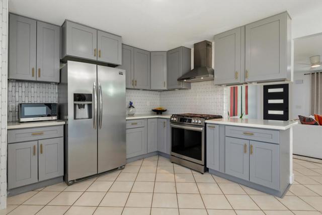 Experience the ultimate La Quinta desert lifestyle in this move-in ready home, perfectly situated near world-class golf and desert amenities. This 4 bed/2 bath residence features a modern open floor plan and panoramic mountain views. 52140 Avenida Herrera offers worry-free living with a new roof, a new HVAC system, new dual-pane windows, fresh interior and exterior paint, new recessed lighting, modern ceiling fans throughout, and also includes some furnishings, and the washer and dryer. The large covered front porch and walkway provide a welcoming and grand entrance. The interior is beautifully scaled for the size of the home with the living room flowing into the dining area, which features a sliding door to the backyard. The updated kitchen showcases gray cabinetry, updated countertops, a full-wall tile backsplash, and stainless steel appliances with included refrigerator! The large primary suite offers a private, updated ensuite bathroom with a walk-in shower. There is also an updated full-size, hall bathroom for the three secondary bedrooms to share. Enjoy the resort-style backyard with a concrete-paved area - this space is ready for the new owner's personal touch and is perfect for entertaining or a peaceful retreat! Also, the gorgeously designed front yard features drought tolerant landscaping with drip irrigation system. Located in La Quinta Cove with no HOA and just down the street from shopping, dining, hiking trails, and many world-renowned events - including Stagecoach, Coachella, the BNP Paribas Open, and a PGA Tour event--this home offers an incredible lifestyle opportunity. Schedule your private tour today!