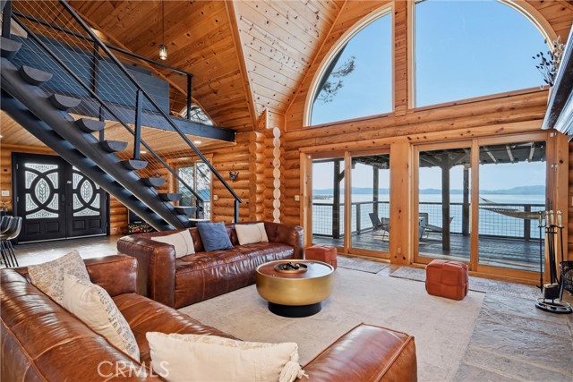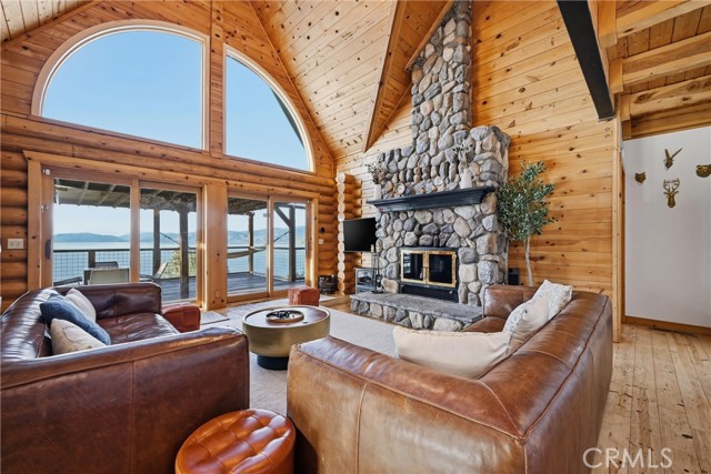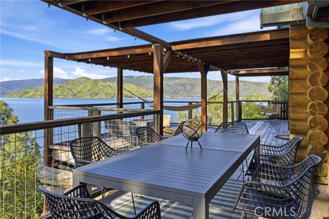 Tucked at the end of a quiet cul-de-sac, this exceptional 3± acre lakefront property offers privacy, sweeping views, and approximately 500 feet of Clear Lake frontage. Made up of three separate parcels, the property also provides lake access via the community boat ramp, making it an ideal setting for enjoying lake life. The home features 2 spacious bedrooms but lives like a 3-bedroom, along with 2.5 bathrooms, a large upstairs bonus room, and an open den, offering flexible living space for guests, work, or recreation. Nearly every room captures peaceful lake views, creating a tranquil atmosphere throughout the home. The main level showcases an inviting open-concept layout with a kitchen featuring resin countertops, updated lighting, a breakfast nook, and a walk-in pantry. The kitchen flows seamlessly into the living room with soaring ceilings and dramatic floor-to-ceiling windows, filling the space with natural light and leading directly to the attached deck—perfect for soaking in the scenery. The primary suite enjoys beautiful lake views and includes a private fireplace and ensuite full bathroom, creating a relaxing retreat. Upstairs you’ll find an additional bedroom, full bath, spacious bonus room, and open den area, offering plenty of room for guests or additional living space. Additional features include open parking and a carport at the metal storage building, providing convenient space for vehicles, boats, or lake gear. Whether you’re seeking a full-time residence, private lake getaway, or investment opportunity, this property offers it all. It is currently a well-established short-term vacation rental, with a proven track record of income. The turnkey rental business and online profile may be transferred to the new owner, offering an excellent opportunity for immediate revenue.