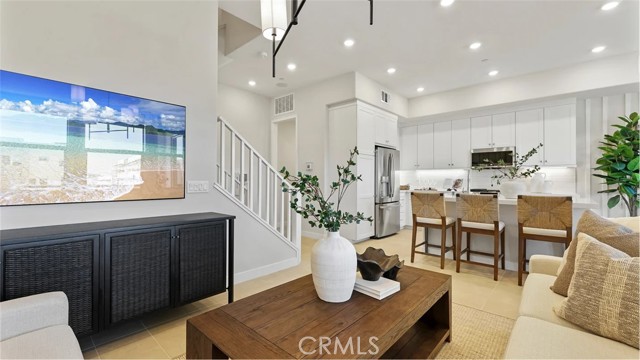From the entry, head upstairs to the main living space on the second floor. Upstairs, the Great Room, kitchen and dining room are arranged in a convenient and contemporary open floorplan that maximizes the footprint of the interior. A deck complements the open living space. Two bedrooms are found on the top level, including the owner’s suite.