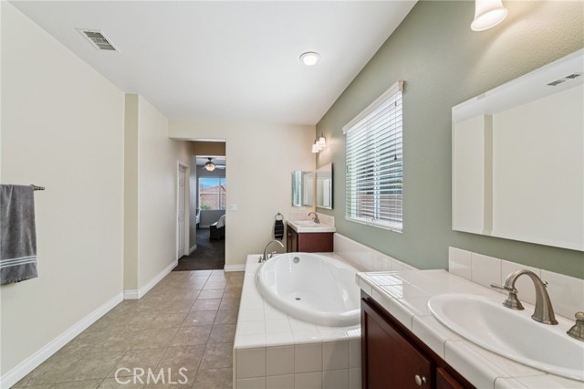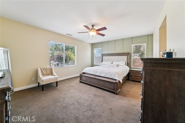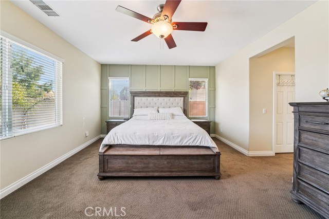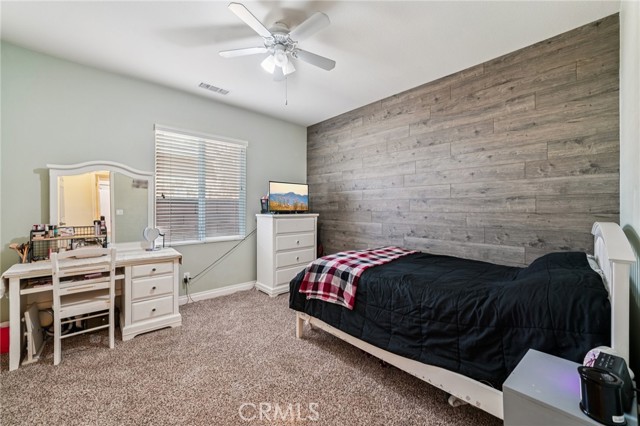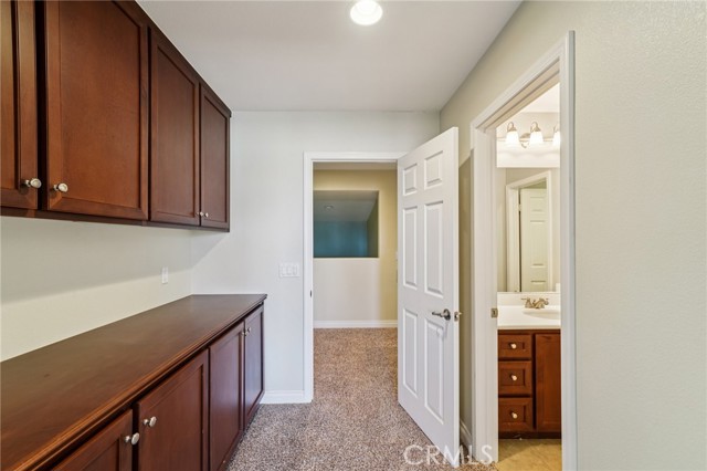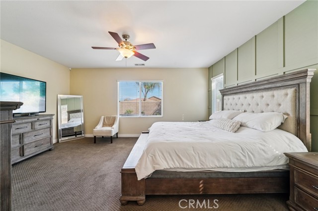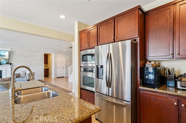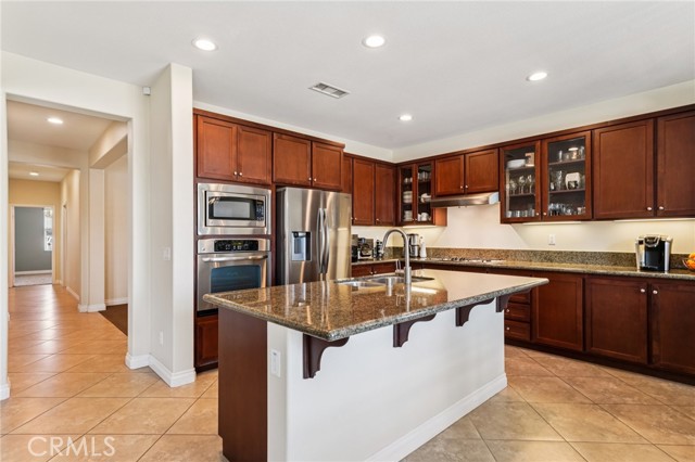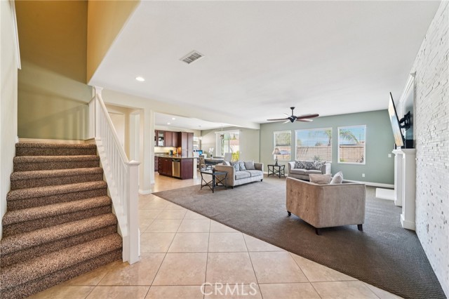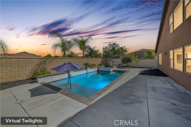 Gorgeous 3,156 Sqft. Single Story Pool & Spa Home with 4 Bedrooms, 3.5 Bathrooms, PLUS Office, PLUS Formal Dining Room – 18 Solar Panels & Prime Cul-de-Sac Location! Beautifully maintained and truly move-in ready, this exceptional home offers the convenience of main-level living with three bedrooms downstairs, plus a private upstairs suite featuring a bedroom (with a closet) and a full bathroom—perfect for multigenerational living, long-term guests, or a private media retreat. The main level features three spacious bedrooms, PLUS a dedicated office, PLUS a formal dining room, along with an open and inviting layout designed for everyday comfort and entertaining. The heart of the home is the expansive open kitchen that flows seamlessly into the family room and breakfast area, featuring a huge center island, abundant cabinetry, and a layout built for gathering. Step outside to your private backyard retreat with a beautiful saltwater pool and spa, ideal for relaxing, entertaining, and enjoying Southern California living year-round. Additional highlights include 18 solar panels for improved energy efficiency and a spacious 3-car tandem garage offering excellent parking and storage flexibility. Meticulously cared for and in beautiful condition throughout, this home truly reflects pride of ownership and is ready for its next owners to enjoy.