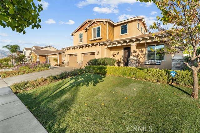Welcome to your dream home in one of Redlands' most coveted neighborhoods. This stunning two-story residence combines architectural beauty with practical, modern upgrades, offering a seamless blend of comfort and sophistication without an HOA fee! As you step inside, you are immediately greeted by soaring high ceilings and an abundance of natural light. The thoughtfully designed open-concept floor plan connects the great room, dining area, and kitchen—creating the ultimate environment for entertaining and family gatherings. The gourmet kitchen is a chef’s delight featuring corian countertops, stainless steel appliances, a massive walk-in pantry, and ample custom cabinetry. Designer finishes include upgraded flooring, recessed lighting, and modern fixtures throughout. This exquisite home uniquely features two spacious bedrooms, one has been converted to an office but easily be converted back to a bedroom, and two bathrooms on the main level, offering perfect flexibility for guests or multi-generational living. As you retreat upstairs you walk into a spacious loft as well as two additional bedrooms complete with a jack and jill bathroom. Following through to the master suite, you will find a true sanctuary featuring a large walk-in closet and a spa-like en-suite bathroom with dual vanities and a deep soaking tub. Step outside to your private backyard paradise. Designed for year-round enjoyment, the outdoor space features a covered patio with a large built in BBQ island with fridge. It also provides a cozy fire pit zone perfect for evenings under the stars. The professional landscape yard provides plenty of room for activities. This home is as smart as it is beautiful, equipped with high-value convenience and energy-saving items such as paid off solar panels for significant energy savings, a tankless water heater, ceiling fans in key rooms. The attached 3 car tandem garage has plenty of room to park your vehicles or you can split it and take advantage of the deep garage to use as an extra space, currently being used as a home gym. Situated in a friendly, vibrant community, you are just steps away from local parks featuring basketball courts, playgrounds, and scenic walking paths. With top-rated schools, premier shopping, and fine dining just minutes away, this home offers the quintessential Redlands lifestyle. Call today to schedule your own private tour.