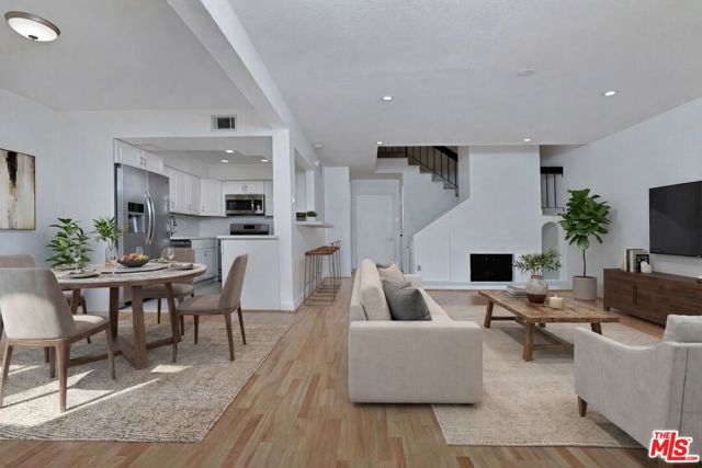 This turnkey, move-in-ready residence offers a rare sense of ease from the moment you arrive, with the elevator just steps from the door providing direct access to the unit, allowing you to leave the world below behind. The residence spans two levels, and the elevator provides convenient access to both the lower and upper floors, making it an ideal option for those who prefer to avoid stairs while still enjoying the space and separation of a two-story layout. Perched on the top floor in the heart of Studio City, this light-filled condo spans approximately 1,271 square feet and has been recently painted, creating a fresh, modern feel throughout. The spacious two-bedroom, two-bathroom floor plan is designed for how people truly live today. New flooring, a warm fireplace, and an open layout create an inviting backdrop for everyday living. The living and dining spaces flow seamlessly, perfect for hosting friends or enjoying quiet evenings at home. The newly updated kitchen naturally becomes the gathering place, featuring quartz countertops, stainless steel appliances, and a breakfast bar ideal for morning coffee or casual dinners. Two private patios extend the living space outdoors. One sits just off the living area, perfect for enjoying morning light and fresh air, while the second creates a peaceful retreat off the upstairs primary suite. The primary bedroom feels like a true sanctuary, complete with a generous walk-in closet, ceiling fan, and direct patio access for relaxing at the end of the day. Additional highlights include an in-unit washer and dryer, updated bathrooms, abundant storage, central air and heat, a flexible bar or workspace area, and a recently installed new roof. Tandem parking for two vehicles with a dedicated EV charger, adds a level of convenience rarely found in similar homes. Beyond the home itself, the lifestyle is unmistakably Studio City. Located just blocks from Ventura Boulevard, you'll enjoy effortless access to boutique shopping, cafes, and wellness studios, along with The Shops at Sportsmen's Lodge, Whole Foods, Erewhon, Equinox, and the Studio City Farmers Market. Spend weekends at nearby Beeman Park, explore the scenic trails of Fryman Canyon and Wilacre Park, or take advantage of quick access to the 101 freeway for seamless city living. Top-floor, private, turnkey homes in this prime location rarely become available. Whether you're a professional, creative, or simply seeking comfort, convenience, and connection in one of Los Angeles' most desirable neighborhoods, this residence offers more than just a space to live; it offers a place to settle in, slow down, and truly feel at home.
