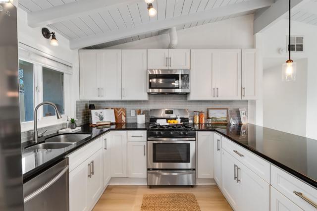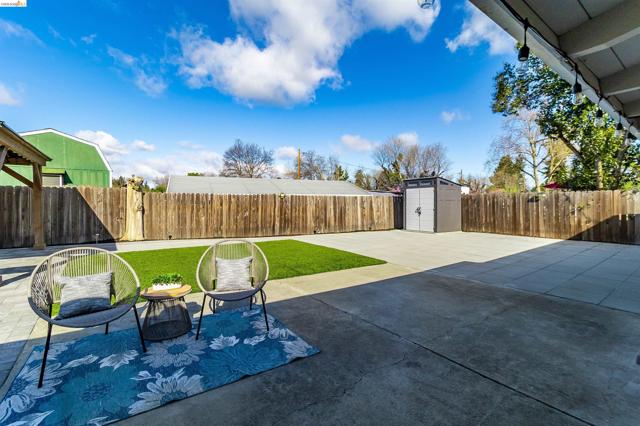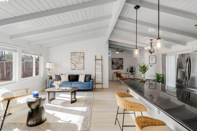 Beautiful single-story home with mid-century charm and an open layout that is truly move-in ready. The updated kitchen offers granite countertops, stainless steel appliances, and a modern look that flows nicely into the main living room. Just off the living room is a bonus area offering an additional approximately 200 sqft, perfect for entertaining, a second sitting area, or a home office, adding flexibility to the layout. The home features new flooring in the main living areas, along with updated bathrooms that add a fresh and modern feel. It also includes central heating and AC for year-round comfort, as well as dual-pane windows that bring in plenty of natural light. Outside, the front and backyard are designed for low-maintenance living. The paved backyard includes a gazebo and artificial turf, creating a great space for outdoor dining, relaxing, or hosting friends and family. In front, the long driveway provides plenty of space for parking and added flexibility. Conveniently located near BART, parks, restaurants, shopping, grocery stores, and with easy freeway access. Come see all that this home has to offer!