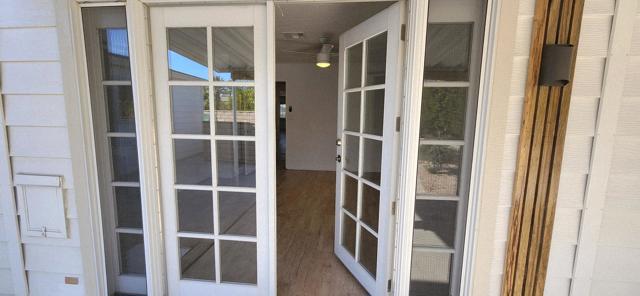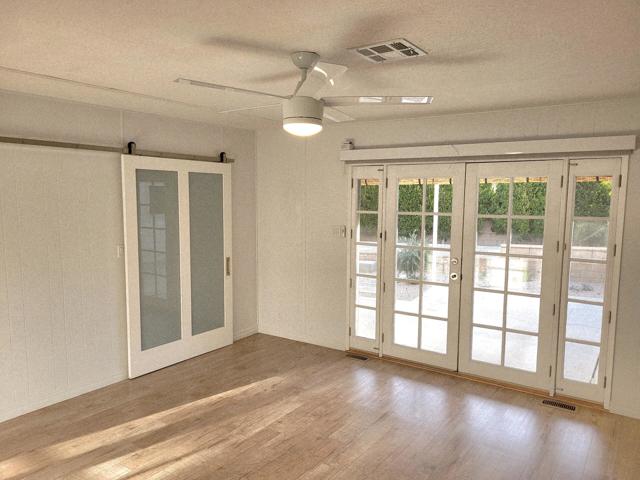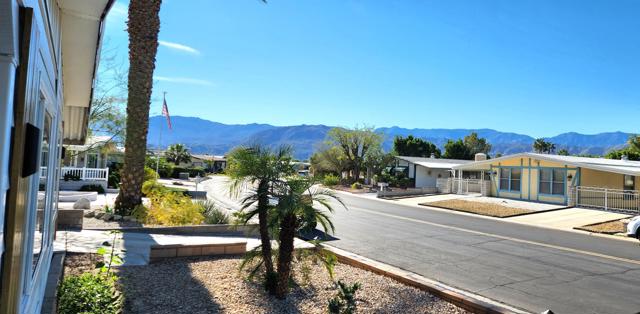 This tastefully remodeled home boasts a wide range of energy-saving improvements, including a paid-off solar system, EV charging station, newer roof, A/C and furnace, ceiling fans throughout, and dual-pane windows all designed to lower utility costs. The spacious layout features a centrally located kitchen with newer stainless-steel appliances, a walk-in pantry, quartz countertops, and ample cabinetry. Adjacent is a spacious family room with a custom bar area, perfect for daily living or entertaining guests. Recent renovations include stylish interior and exterior doors, plus fresh paint. The primary suite offers a walk-in closet and French doors to a private patio. Both bathrooms have been updated for comfort and modern appeal. The large golf cart garage includes storage and a work bench, offering a dedicated space for hobbies and projects. Located in Palm Desert Greens, a highly desirable 55+ community, residents enjoy numerous amenities including a Restaurant and Bar. You OWN the land, and a low $400 monthly HOA covers cable TV and internet, trash service, 24/7 guard-gated security, and FREE GOLF! Experience firsthand why this property exemplifies exceptional desert living.