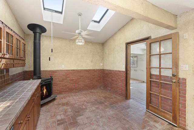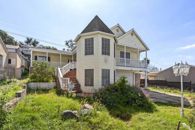 Tax records show 4BR/3BA, but the home currently functions more like a 2BR/2BA with two primary suites and several bonus spaces full of potential. Known as Caislean na Minairde Minard Castle, this home feels like a hidden storybook retreat and underwent a major renovation in 1989. A beautiful front deck welcomes you into a formal entry, oversized kitchen with eat in dining, walk in pantry, and charming brick floors and walls. The main level primary features a gas fireplace, turret room, and balcony with mountain views. Upstairs, the second primary feels like a private retreat with abundant natural light, walk in closet, and ensuite bath. Sliding doors from nearly every major room lead to a private drought tolerant courtyard ready for a firepit and outdoor seating. And don't forget to visit the street level turret room with its own access, then take a peek at the secret room tucked above the closet because every castle should have a little surprise.