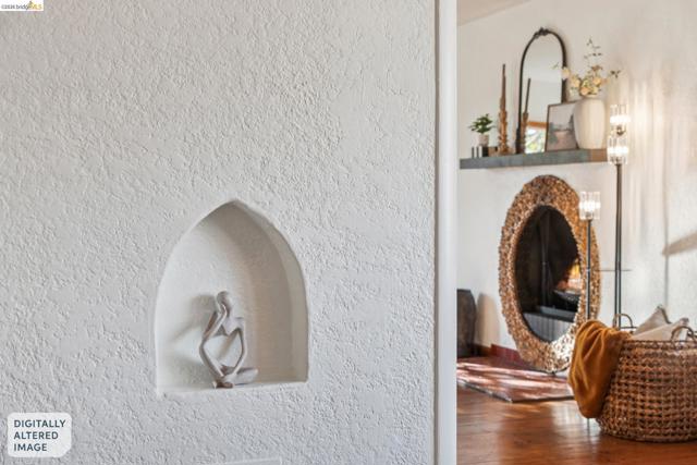 Welcome to one of Vallejo's most character-rich addresses. Tucked on a quiet one-way street near St. Basil’s Church & Grant Mahoney Park, this 1939 Spanish-style home is Vista-adjacent with easy freeway access & a short drive to the waterfront & downtown. Step inside to deep-toned oak floors with walnut inlay & a round wood-burning fireplace with a mantel crafted from 100-year-old Wisconsin barn wood. The living room, with its picture window framed by a magnolia, flows into the arched-ceiling dining room and a chef’s kitchen with granite countertops, professional range hood, gas cooktop, double oven, dual sinks, & a cozy breakfast nook leading outside to a private retreat with banana & lemon trees, birds of paradise, a handcrafted fountain, Saltillo tile accents, & café lights. Hugelkultur raised beds, a 7-foot potting bench, & 2 garden sheds complete this gardener’s paradise. The house offers 3 bedrooms & 2 full baths. The sunlit lower-level primary with ensuite & 2 closets. Upstairs, 2 bedrooms with Elfa walk-in closets share an expansive bath. Need a home office? One spot includes built-ins & its own closet in front of a sunny window. Plus: surround-sound, ample storage, & owned solar panels help keep utility bills low! Timeless charm and modern comforts welcome you!