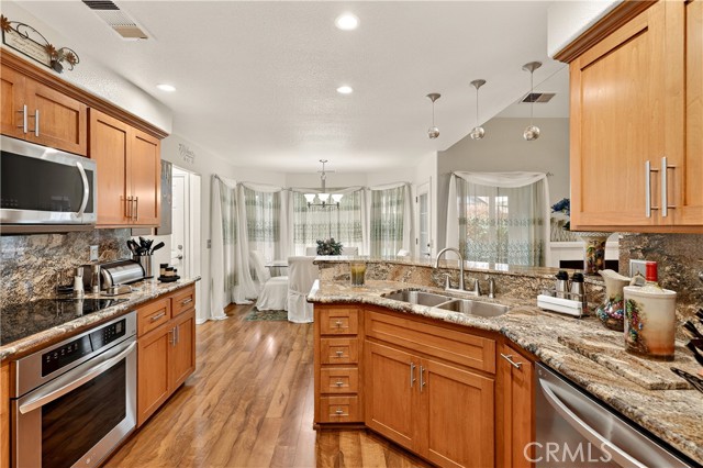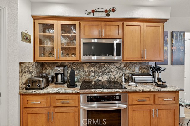 Lovely semi custom home nestled on a cul de sac lot. This 4 bedroom, 3 full bath one owner home has much to offer. The tiled entry leads to a great room with plush carpet and a cozy fireplace and extends to an open floor plan. The kitchen and dining area were completely gutted and remodeled and the kitchen was redesigned with a wine rack, spice cabinet, 2 display cabinets with beveled glass, a built up breakfast bar with pendant lights above, self closing drawers, pull out drawers and beautiful river rock style granite and back splash. Also upgraded with LG appliances, recessed lighting as well as under counter lighting. The bath off the kitichen has been upgraded with granite counters to match. The master suite is spacious and the master bath has a soaker tub as well as a seperate shower. The walk in closet has professionally installed organizers to include shelves, baskets and ample hanging rods. All of the baths have been updated to varying degrees. The garage has attractive and ample storage cabinets and a work bench that were also professionally installed. For your tinier guests thre is a playhouse built by a contractor that has a ladder, loft bed with safety bar, desk, ceiling fan and electricity. The location is stellar behind the promenade and close to a neighborhood park, walking path, hospital, schools, restaurants, churches, gym and shopping. This home is accented with outdoor lighting. It is a beauty. Amenities list and pest certification is available.