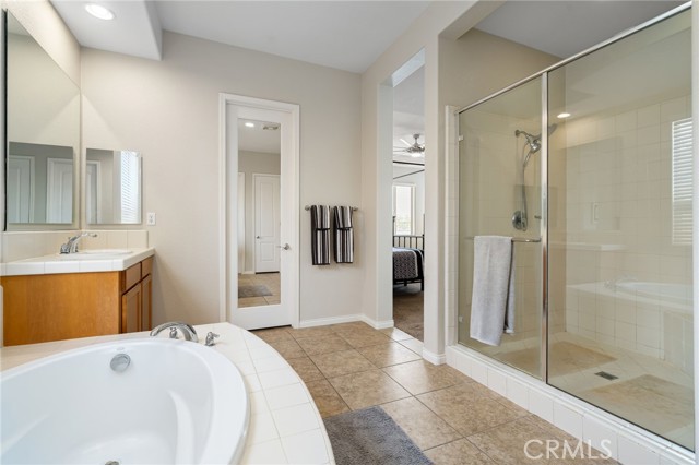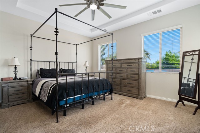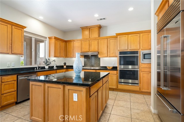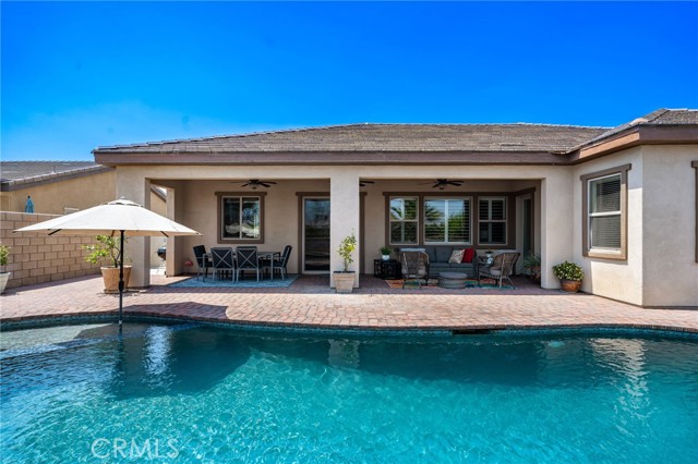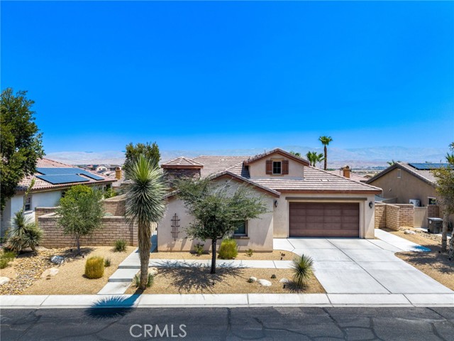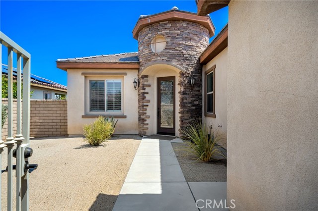 Located in the desirable community of The Gallery in Palm Desert, this Ponderosa built, 4 bedroom, 2.5 bath home offers 2,596 sq. ft. of stylish living space. A gated courtyard entry leads to an elegant rotunda, high windows, and 12 ft. tray ceilings that fill the home with light. The formal dining room is perfect for entertaining, while the kitchen boasts black granite counters, double ovens, and a Sub-Zero built-in refrigerator. The fourth bedroom is currently used as an office with a walk-in closet for added storage. The home is powered by 40 solar panels and a Tesla back up battery that are paid off. Enjoy resort-style outdoor living with a covered patio featuring recessed lighting and a mist system, plus a Pebble Tec pool with tanning shelf. The private backyard offers low-maintenance landscaping and stunning mountain views. Two attached garages accommodate three cars. This home blends elegance, comfort, and function in one of Palm Desert’s most sought-after neighborhoods.