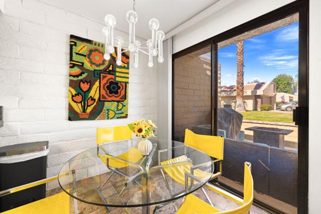 Welcome to this beautifully updated 2 bedroom, 3 bathroom condo in the gated community of Cathedral Canyon Country Club! Tucked away on a quiet cul-de-sac with no neighbors above or below, this two-story residence offers privacy, comfort, and easy desert living.The thoughtfully designed floor plan features two spacious primary suites. The lower level circular floor plan provides a convenient and functional flow between the living, dining, and kitchen areas. Sliding doors open to a private patio overlooking a lush greenbelt, mountains and offset golf course views, creating a peaceful setting to relax or entertain. The home is steps away from a community pool, offering the feeling of a private backyard pool while maintaining privacy due to the home's positioning. Additional highlights include an attached two-car garage with a brand new garage door, offering direct access to the home. Recent updates include newer flooring, updated appliances, a newer A/C system, fresh interior and exterior paint, and a refinished upper deck. Furnishings are flexible and may be included if the buyer desires.Residents of Cathedral Canyon Country Club enjoy resort-style amenities including an 18-hole golf course, tennis courts, clubhouse dining, and multiple pools and spas.Ideally located just minutes from the Cathedral City arts and entertainment district by the Mary Pickford Theater, Agua Caliente Casino, and about 15 minutes to both downtown Palm Springs and shopping and dining at El Paseo. Call for a private tour today!