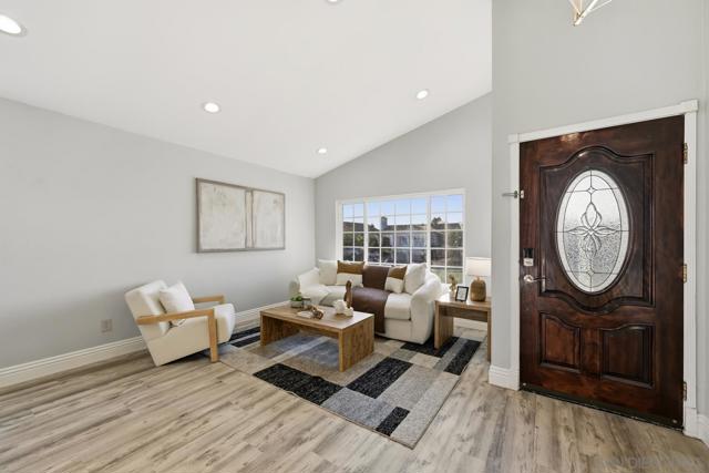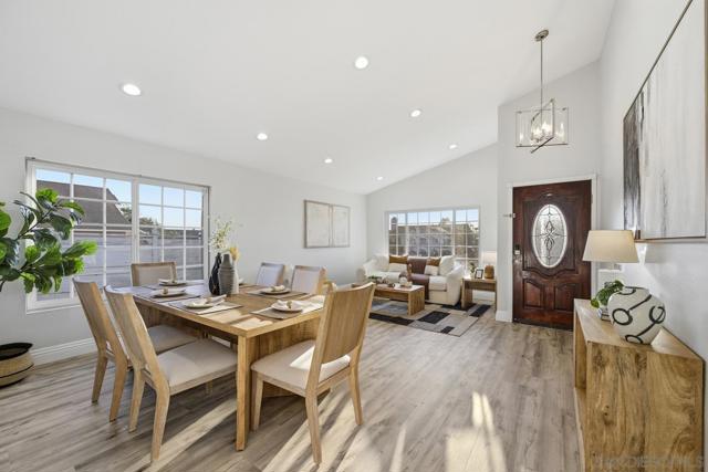 Beautifully remodeled 4-bedroom, 2-bath single-family home located in the Valencia Park neighborhood of Southeastern San Diego. This move-in-ready residence features new laminate flooring, fresh interior paint, recessed lighting, and central heating and air conditioning. The updated kitchen is equipped with a brand-new stove, dishwasher, microwave, and stainless steel refrigerator, and offers easy access to the outdoor area, ideal for seamless indoor/outdoor living and outdoor dining. Both the front and backyard have been fully refreshed, providing functional space for relaxing or entertaining. The home includes an attached two-car garage, two additional driveway parking spaces, and ample street parking. Conveniently located approximately one minute from Nye Elementary School with easy access to CA-94, CA-54, and I-805, and just a short drive to Downtown San Diego.