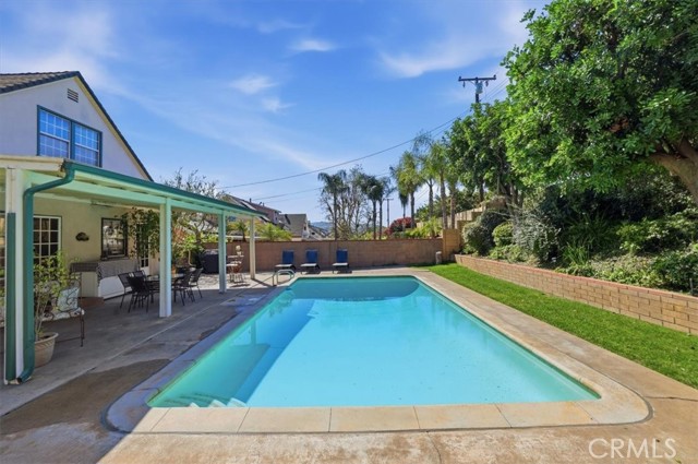 Exceptional "Pride of Ownership" home nestled in the Hidden Village tract of Charter Oak.. Charming curb appeal with distinctive siding, window shutters, rose planters, large concrete driveway, nice looking wrought iron gates to RV access, and a quaint front porch.. A large covered patio, good sized pool, terraced planter, vine covered wall, well manicured lawn and mature trees highlight a generous sized back yard.. Enjoy a flexible floor plan with 2 bedrooms upstairs with storybook sloped ceiings and 2 bedrooms downstairs.. The interior is delightully decorated throughout and shows really really well.. The living room has lots of natural light with large dual pane windows that overlook pleasing rear grounds.. A cheerful country kitchen has refaced cabinets, shutter trimmed pony wall, and appliances.. Amenties and upgrades include instant hot water, copper plumbing, hardwood flooring, ceiling fans, newer carpeting, attic fan, panel doors, lots of attic space, wooden window blinds, forced air heating, central air conditioning, and recently cleaned ducting.. This mid century gem is located in the Charter Oak School District with California Disinguished Schools.. Parks, boating, hiking trails, colleges, and shopping centers are also conveniently nearby.. A "Gold Medal" opportunity for some lucky family..