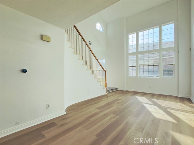Welcome to 7212 Rancho Rosa Way, Rancho Cucamonga, a beautifully maintained 3-bedroom, 2.5-bath home offering approximately 1,882 sq ft of living space. It is located at the end of a very private cul-de-sac with no neighbors to the east of the property. The home features fresh interior paint throughout and brand-new flooring on the first floor, providing a clean and modern feel. Upon entry, you are greeted by soaring high ceilings and a bright, open living room filled with abundant natural light, creating an inviting first impression. As you move further into the home, the layout flows into a remodeled kitchen that opens to a comfortable family room, making it ideal for both everyday living and entertaining. Upstairs you will find three bedrooms, including a spacious primary suite and two guest bedrooms. The primary bedroom offers a generous layout, while the primary bathroom features a European-style soaking tub and a separate walk-in shower. Both the primary and guest bathrooms are equipped with individual sinks for added convenience. Step outside to a beautifully landscaped backyard filled with a variety of plants and fruit trees, creating a peaceful and picturesque outdoor setting perfect for relaxation or gatherings. The home is also equipped with leased solar panels for enhanced energy efficiency and a 240-volt circuit for a NEMA 14-50 outlet to support electric vehicle charging. Conveniently located near parks, shopping, and dining, this move-in ready home combines comfort, functionality, and charm in a desirable Rancho Cucamonga neighborhood.