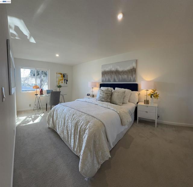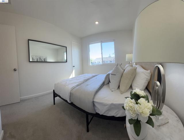 This lovely Gentry townhome, located in North Fremont with great school district, easy access to I880 and Dumbarton Bridge, Alameda Creek trail, close to shopping, dining, etc. Open floor plan offers comforts and privacy. Two bedrooms upstairs with a full bath, Primary bedroom with large mirror closets. Living room, kitchen, and dining downstairs with a half bath. Large sliding door by the living/dining brings in lots of natural light. Dual pane windows, Central AC, Fresh interior paint, Enclosed patio in front yard with a storage for your relaxation. Great price for this beautiful townhome.