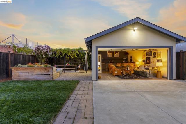 Culture + Community at 3322 Chestnut - Practically rebuilt 10+ years ago with layered areas for entertaining! West Oakland/Emeryville border 4-bedroom, 2-bath home on a 5,130 sq ft lot. Soaring ceilings in a huge open living space, stainless steel appliances in kitchen with caesar stone counter tops, pantry, and light-filled living spaces. Primary suite with walk-in closet and ensuite tiled shower; second bath with tub for those relaxing nights or kids baths. Beautiful deck that looks out to an awesome yard with many entertaining spaces. Lower basement level offers expansion potential - double the square foot of your home, build out a secondary unit to rent; or simply use as is for great storage, workshop and wine cellar. The long driveway that could park 3-4 cars leads to a detached 2-car garage converted to versatile bonus space with two french doors - outdoor living room, home bar, man cave or she shed there is something for everyone! The bckyard features new grass, pavers, and covered pergola with hanging passion fruit vine — perfect for entertaining. Practically rebuilt 10 years ago with updated foundation and systems. Lively, convenient location near Downtown, Emeryville, and major freeways. Spacious, flexible, and move-in ready!