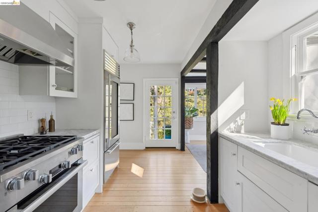 New Listing! Charming Montclair Cottage rich with captivating architectural details. An arched front door and companion arched window make a striking first impression. Dramatic wood beams flow seamlessly throughout the main level. The sun-drenched living room with warm oak floors and a custom marble fireplace welcome you into this jewel box. The stellar kitchen features high-end appliances to inspire your inner chef. The dining room opens to the kitchen making entertaining a breeze. Upstairs offers a cozy guest bedroom next to an updated hall bath. Additionally, a spacious primary suite with a beautifully appointed ensuite bathroom completes the upper level. The outdoor spaces are simply stunning. Patios and lush gardens wrap around the home, creating multiple places to relax and entertain. The detached garage lends itself as a home office or studio. Minutes to Montclair Village shops and restaurants, as well as schools, parks, and transportation. Open Sunday 2-4:30.