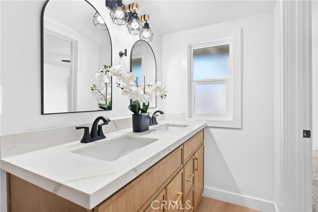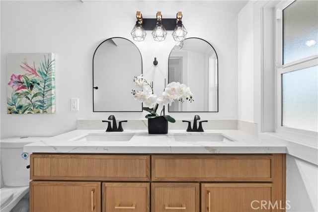 Welcome to this beautifully remodeled single-story home located on a quiet, tree-lined street in Ontario. This move-in ready property has been thoughtfully upgraded throughout and offers stylish, modern finishes from top to bottom. The home features all-new dual-pane windows, new vinyl sliding doors, and durable wood-look, low-maintenance flooring throughout. Inside, you’ll find all new interior and exterior doors complemented by Craftsman-style baseboards and casing, creating a cohesive and elevated look. Tasteful new finishes throughout the home add warmth and contemporary appeal. Central heat and air conditioning. The fully updated kitchen showcases slimline white oak shaker cabinets, elegant quartz countertops, and brand-new stainless steel appliances—perfect for both everyday living and entertaining. Both bathrooms have been beautifully renovated with new shower tile, modern vanities, and quartz countertops. Step outside to a large backyard featuring a covered patio ideal for relaxing or hosting gatherings. The property also offers fully landscaped front and back yards, providing attractive and functional outdoor spaces. This turnkey home combines modern upgrades, comfortable living, and a peaceful location—an excellent opportunity in a desirable Ontario neighborhood with No Hoa and a low tax rate.