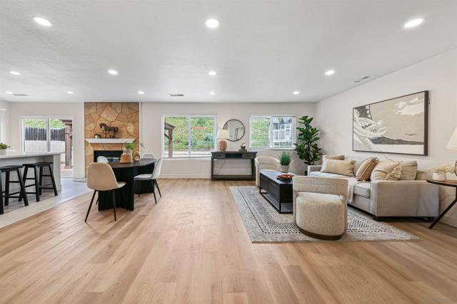 Located on a peaceful, low-traffic street near a cul-de-sac, 1544 Indian Summer Rd presents a thoughtfully renovated interior paired with inviting indoor–outdoor living. The home opens to a bright, open-concept living space where wide plank flooring, recessed lighting, and clean modern finishes create a warm and cohesive atmosphere. The living and dining areas flow naturally into the updated kitchen, which features light beige cabinetry, quartz countertops, stainless steel appliances, modern hardware, and a spacious center island designed for both everyday living and entertaining. The renovation was carefully executed with cohesive finishes and attention to detail throughout, creating a move-in ready space that feels both modern and comfortable. Large windows and sliding doors bring in abundant natural light while connecting the interior to the backyard. Outside, a covered pavilion and expansive patio create an inviting setting for gatherings and outdoor dining. The terraced hillside provides a private backyard setting while adding depth and character to the landscape.