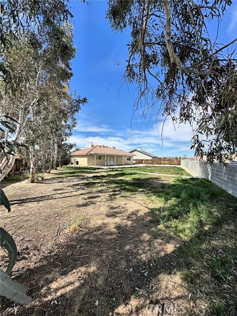 Welcome to this inviting 3-bedroom, 2-bathroom home offering approximately 1,544 square feet of comfortable living space, located on a quiet cul-de-sac with limited neighboring homes. The main living area features high ceilings that create a bright and open feel, while the thoughtful layout provides excellent separation and privacy. The spacious primary suite on the south side of the home, features a generously sized bedroom, dual sinks, a walk-in shower, and a walk-in closet. On the opposite side of the home, two additional good sized carpeted bedrooms and a comfortable den/TV room provide flexible space for family, guests, or maybe a home office. The kitchen and dining area are towards the back of the home, creating a natural gathering space for everyday living and entertaining. The view from the kitchen sink overlooks the expansive backyard, and sliding glass doors lead directly to the covered patio with a concrete slab, perfect for outdoor dining, relaxing evenings, or weekend barbecues! Situated on an oversized 17,200 square foot lot, the backyard expands and offers plenty of space for outdoor activities and future possibilities. The east-facing backyard provides pleasant morning sunlight and cooler afternoons, creating a comfortable outdoor setting throughout the day. Other features include easy care tile flooring through much of the home, a separate laundry room, and an attached two-car garage with direct access. This home also features a durable tile roof, central heating and air conditioning for year-round comfort, and an evaporative cooler in the den area for supplemental cooling during the warmer dryer months. Conveniently located near Hesperia Road with easy access to shopping, dining, and everyday amenities, including grocery stores just minutes away. This home offers space, comfort and opportunity, in a desirable family cul-de-sac setting. Call and schedule to view today!