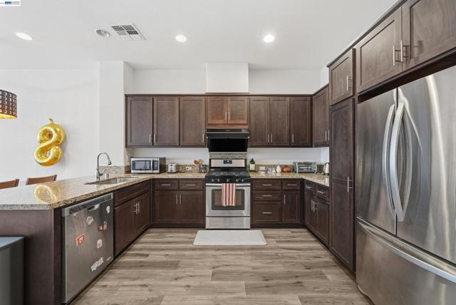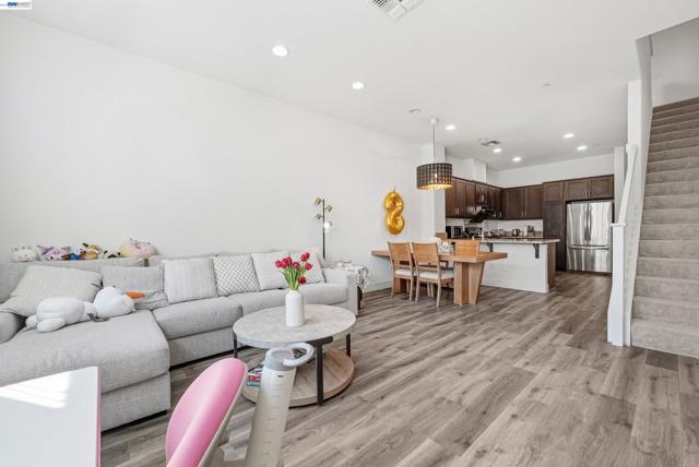 Experience the perfect blend of style and convenience at 5569 Azalea Way, an East facing, stunning 1,540-square-foot townhouse in the desirable Timber community of Newark. This bright, east-facing home features 3 bedrooms and 3 bathrooms, having been extensively upgraded with fresh contemporary paint and brand-new flooring throughout—completely carpet-free for a modern, sleek finish. The bathrooms have been recently updated with tasteful, high-end fixtures, complementing a gourmet kitchen that boasts quartz countertops and premium stainless steel appliances. Designed for a "work-life balance," the open floor plan includes recessed lighting, stylish chandeliers, and a tandem 2-car garage with ample storage. Residents benefit from low HOA fees that cover common area maintenance and landscaping, all while being minutes away from major employers like Tesla and Meta, as well as the NewPark Mall and Costco