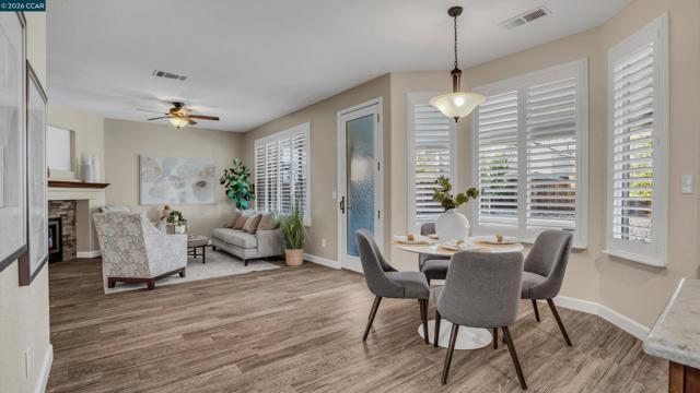 Welcome to this beautifully updated Brentwood home that has been meticulously maintained and shows like a model, featuring owned solar with battery backup, thoughtful upgrades, and a truly move-in ready feel. Soaring ceilings and abundant natural light create a bright, open atmosphere that feels both elegant and welcoming, with a spacious layout ideal for everyday living and entertaining. The fully remodeled kitchen features warm soft-closing cabinetry, Silestone countertops, a stylish backsplash, and generous workspace for cooking and gathering. It opens to the family room with an updated fireplace, creating a comfortable space to relax or host guests. Tile flooring downstairs adds durability and style, while new carpet and plantation shutters provide a fresh, refined look. Upstairs, an open loft landing offers flexible space for a home office, reading nook, or play area. Energy efficiency is enhanced with owned solar (13 panels) and two battery backup units and upgraded window glass in most windows. Outdoor spaces feature low-maintenance artificial turf, decorative rock landscaping, a new backyard lawn, and a covered patio for relaxing or entertaining. With extensive updates and pride of ownership throughout, this home offers comfort and move-in ready living.