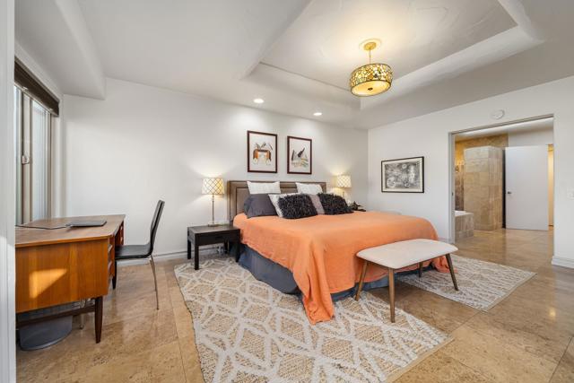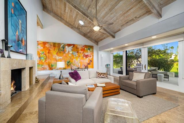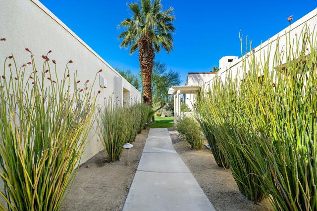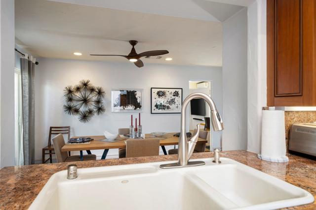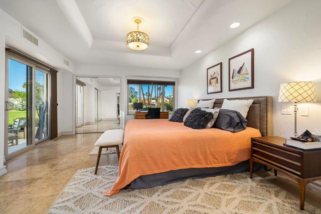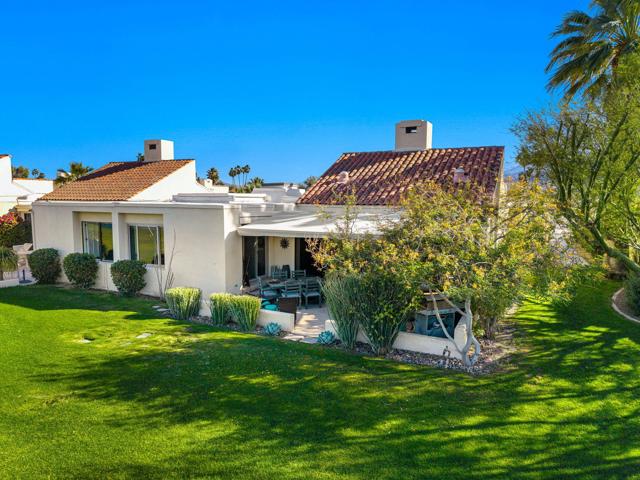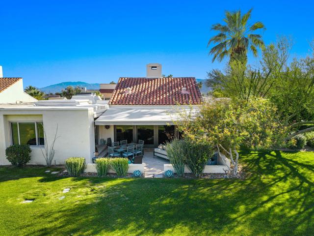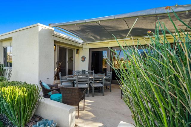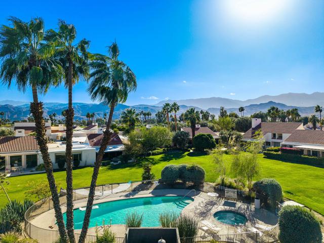 Enjoy effortless desert living in this beautifully upgraded 3-bedroom, 2-bath condo located within the prestigious Mission Hills Country Club. Perfectly positioned to capture stunning mountain and pool views, the home also features a private courtyard that creates a peaceful outdoor retreat ideal for morning coffee or evening relaxation in the desert air. Inside, quality upgrades elevate the space, including elegant travertine tile flooring, granite kitchen countertops, updated appliances, and a premium Sub-Zero refrigerator. The bathrooms have been thoughtfully remodeled with both style and functionality in mind, while a remote-controlled skylight brightens the primary bath with natural light. A rare attached garage adds convenience and value--an uncommon feature in many condo properties within the community. The home is designed for comfortable living and entertaining, featuring a Sonos surround sound system, a newer heat pump HVAC system, and an owned solar system to help keep energy costs low. Step outside to the patio where a power awning and retractable screen allow you to enjoy fresh desert breezes while staying shaded and comfortable. With the community pool just steps away and the renowned lifestyle of Mission Hills Country Club at your doorstep, this home offers the perfect blend of comfort, privacy, and resort-style living.