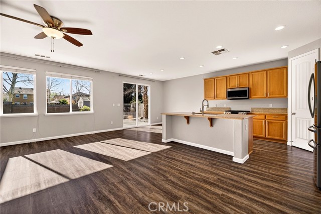 Stunning 4-Bedroom Home with 3-Car Garage — Indoor/Outdoor Entertainer’s Dream Step into this beautifully maintained, light-filled home featuring formal living and dining rooms plus a spacious family room with a cozy fireplace. The expansive kitchen offers abundant storage, a pantry, and a dining nook that flows to the family room — perfect for everyday living and entertaining. Luxury vinyl flooring and soaring ceilings run throughout, complementing large, comfortable bedrooms. The primary suite includes a walk-in closet and direct access to the backyard. Outside, enjoy a serene waterfall with a koi pond, a generous patio for gatherings, an extra storage shed, and plenty of room to add a pool. Solar panels provide energy savings and peace of mind. A three-car garage completes this exceptional package. Don’t miss this rare combination of elegant interior spaces and peaceful outdoor living. Schedule a showing today.