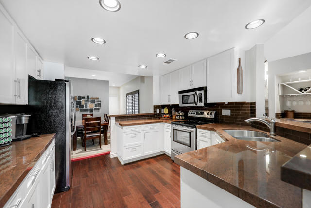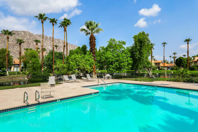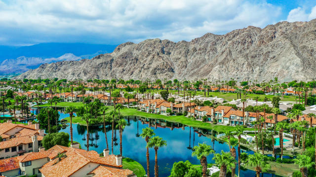 Enchanting 5-Star Mountain Views! Prime waterfront location for this comfortable and stylish remodeled condo in the heart of the world-famous golfing community PGA West. This inviting home blends comfort and sophistication, offering stunning wood flooring throughout. Custom wood shutters and an open kitchen to the great room are perfect for entertaining family and friends. Generous countertop space for food preparation, stainless steel appliances, breakfast bar, and dining room complete the main living area. The primary suite includes a private balcony showcasing dramatic mountain vistas, plus an en-suite bath with dual vanities, shower, and soaking tub. Additional highlights include direct garage access, beverage refrigeration at bar, convenient upgrades throughout, and resort-style amenities nearby--multiple pools and spas, lush landscaping, and tranquil waterfalls. In the evenings, unwind on your outdoor patio as the mountains come alive with a warm golden glow at sunset. Minutes from Old Town La Quinta's charming shops and restaurants, this exceptional property offers easy access to world-class golf, shopping, and dining. Perfect as a full-time residence or weekend getaway, and offered furnished for your convenience!
