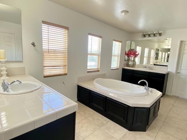 Come see this fantastic home! This property has all the characteristics you are looking for: the total amount of living area, the number of rooms, the size of the yard, adding to that the extensive space for multiple parking. Freshly painted and carpeted. Making it the ideal home for today's families and ready-to-move-in. We start with the impressive entrance with high ceilings and a beautifully appointed staircase landing at the entrance to the master suite. A massive room with space for a sitting area followed by an equally spacious master bath with centered spa-tub, flanked by his & hers sinks. A linen closet, separate shower, private toilet room, and a HUGE walk-in closet complete the master's retreat. Down the hallway is the laundry room followed by a set of three guest bedrooms, last one opening to the great views from the front balcony, and a full guest bathroom. The first floor has beautiful tiled flooring and right in front we see the elegant, formal dining room. And just to the left, past the stairs we find an additional bedroom and bathroom, quiet and private, perfect for a home office or the in-laws quarters. To the right is the welcoming family room with a cozy white-stone fireplace along with the open kitchen with an over-sized center island, bull-nose granite countertops and beautiful dark-finished cabinetry. On the backyard you will find a professionally done covered patio with insulation that runs along the length of the house complete with lighting and ceiling fans. The big, wrap-around yard comes with a built-in gazebo, and still gives you enough space to build a pool! A HUGE PLUS on this home is the availability of parking space from the 3-car garage, to the WIDE & EXTENDED DRIVEWAY, to the RV side gate. New screens were also added to the back and side windows. Look no more, THIS is the HOME for YOU!