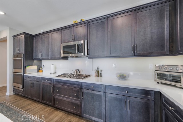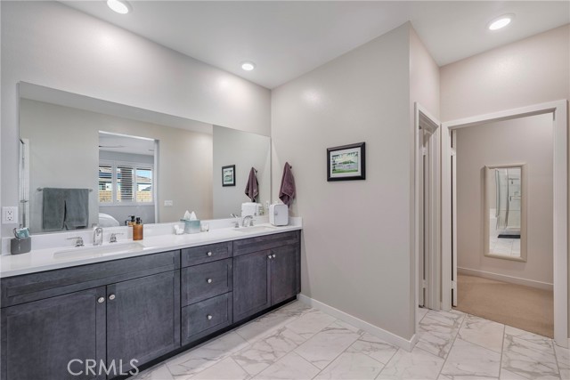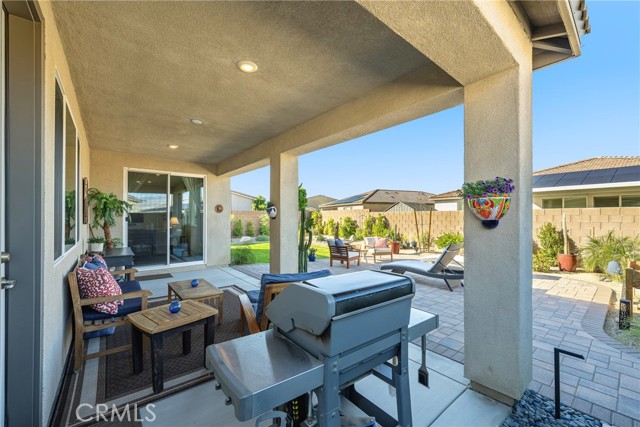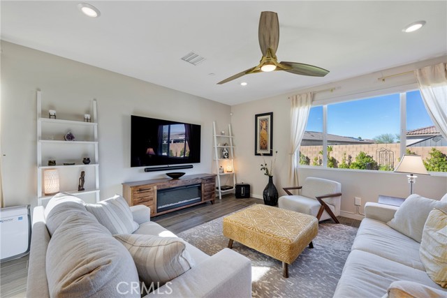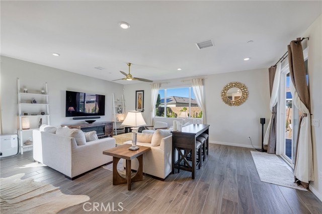 Absolutely beautiful home tucked in a quiet cul de sac in family friendly, gated neighborhood. Complete with fully owned solar system which is a rarity. This 4 bedroom home has upgraded flooring and custom shutters and window treatments throughout. The expansive, gourmet kitchen with upgraded cabinetry has a massive island and opens up to the great family room. The perfect area for family time and entertaining. All bedrooms are spacious and come with ceiling fans and extra spacious and fully custom closets. The home is equipped with a total smart system with a wifi bridge and alarm system which includes and alarm base station, keypad, contact sensors, smoke and CO2 detectors, motion detectors and more. There is a wall split A/C system in garage. There is also solar that is completely paid for and a soft water system for the whole house. The backyard is beautifully landscaped with drought resistant plants and custom pavers. There is a covered patio with room for BBQ and perfect for enjoying quiet evenings. All of this and perfectly located and freeway close. What dreams are made of.