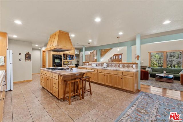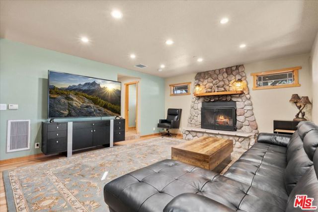 Set on a peaceful stretch of countryside, this custom Craftsman-style home offers privacy, space, and beautiful natural surroundings. Located at 28200 Pine Canyon Rd in Lake Hughes, the property features approximately 2,790 sq ft of living space with 3 bedrooms and 3 bathrooms, built in 2003 and set on about 28 acres of land. Surrounded by mature oak trees and backing directly to the Angeles National Forest, the setting provides wide views, abundant wildlife, and a true sense of quiet rural living. Inside, the home welcomes you with vaulted ceilings, hardwood floors, and detailed wood craftsmanship throughout. The spacious living room features a fireplace and large windows that bring in natural light and views of the surrounding hills. The open layout flows into a generous kitchen and dining area with custom Alder cabinetry, tile counters, and a large center island, creating a comfortable space for everyday living or entertaining. The home includes multiple gathering spaces, including a large den with its own fireplace and a private office, offering flexibility for work or relaxation. The primary suite features a cozy fireplace, dual walk-in closets, and a spacious bathroom with a soaking tub, separate shower, skylight, and dual sinks. Additional bedrooms share a Jack-and-Jill bathroom, making the layout practical for family or guests. A wrap-around covered porch invites you to enjoy the surrounding landscape and peaceful outdoor setting. The property also includes an RV pad and plenty of usable land, with space for horses, a barn, workshop, or other future improvements. With its combination of custom construction, scenic surroundings, and expansive land, this property offers a unique opportunity for buyers seeking privacy, nature, and room to create their ideal lifestyle.