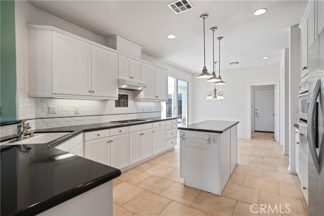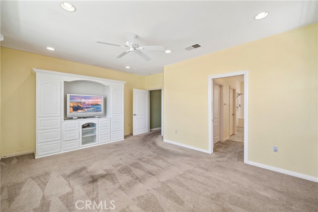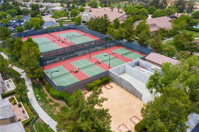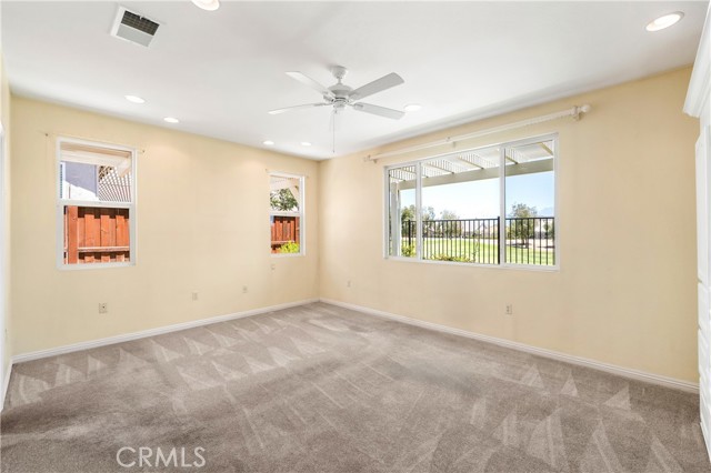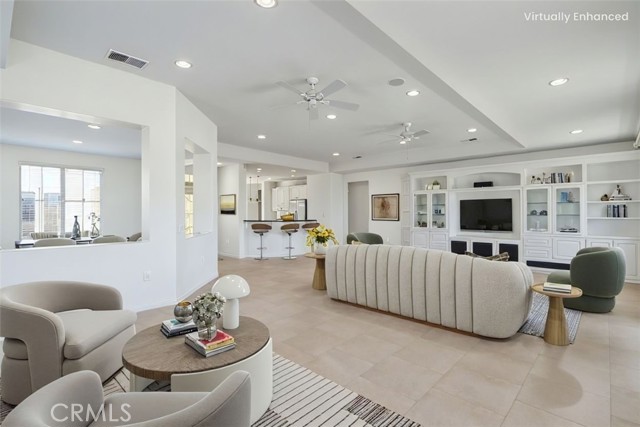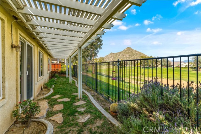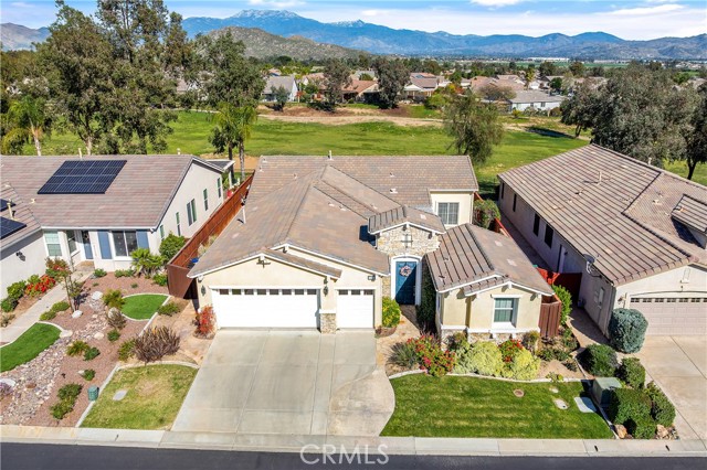 Experience resort-style living in this beautiful Championship 2 floor plan located in the highly desirable, gated Four Seasons Hemet 55+ community with scenic golf course and mountain views. This home offers 3 bedrooms and 2.5 bathrooms, including a detached casita with its own ¾ bath, perfect for guests or a private office. The spacious great room features custom built-ins and ceiling fans throughout, while the kitchen is appointed with granite countertops, a 2-drawer dishwasher and a 5-burner stove. The primary suite includes custom built-ins, a pocket door for added privacy, and an organized closet system. Additional highlights include sound-insulated interior walls, central vacuum, and a garage with epoxy flooring and extensive cabinetry. Enjoy outdoor living in the flagstone courtyard with fountain and covered patios in both the courtyard and backyard, ideal for relaxing or entertaining. Residents enjoy exceptional amenities including 24-hour security, Bistro, ballroom, theatre, fitness center, pool, spa, and multiple recreation courts, all within close proximity to Diamond Valley Lake and Temecula Wine Country.