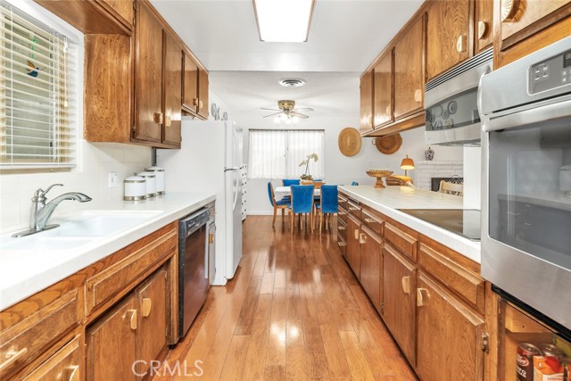 This charming property is move-in ready. The spacious floorplan offers timeless appeal. Enjoy peace of mind with new pex plumbing & new hot water heater. newer roof & forced air heater. Step outside to your beautiful park-like rear yard featuring a large covered lanai & a serene fountain. Delicious Meyer lemon & tangerine trees perfect entertaining or relaxing. You have a large corner lot with room for RV parking. Inside, you'll admire the large open feel, showcasing fresh paint, new window coverings, crown moldings, built in features, gorgeous hardwood and tile floors, upgrades and updates flow throughout! This home is also close to schools and handicap-accessible. Don't miss out on this one of a kind opportunity!