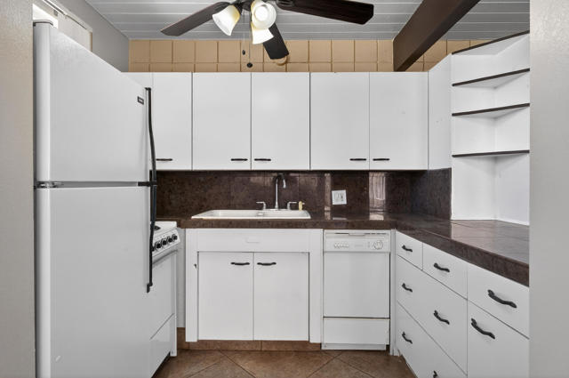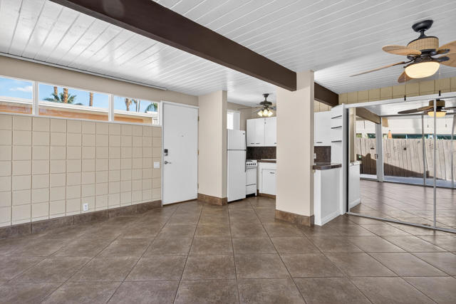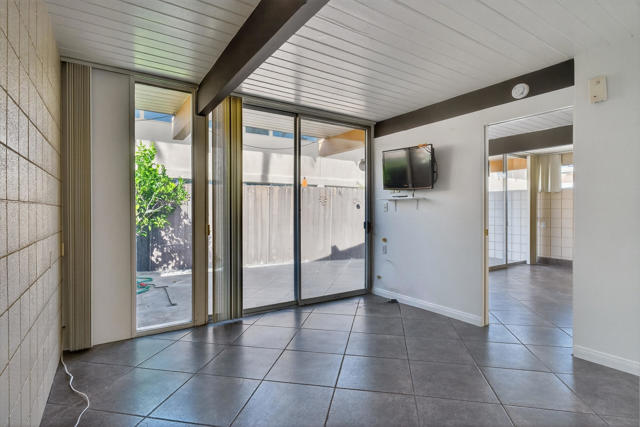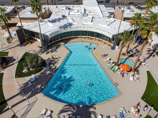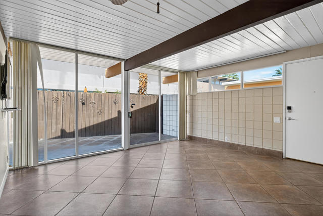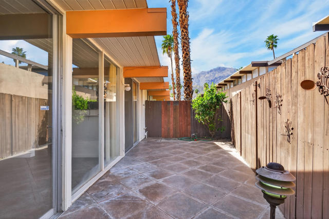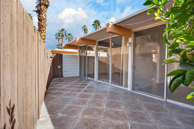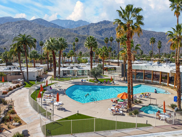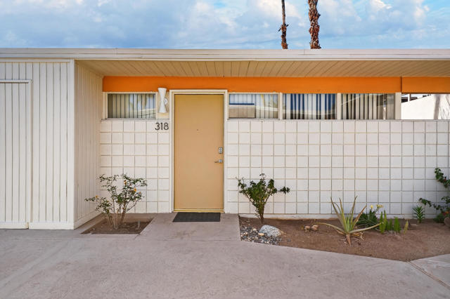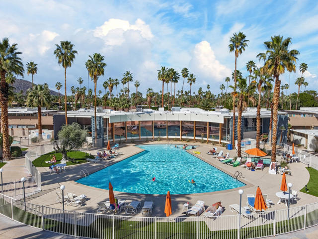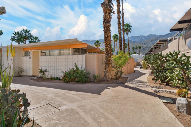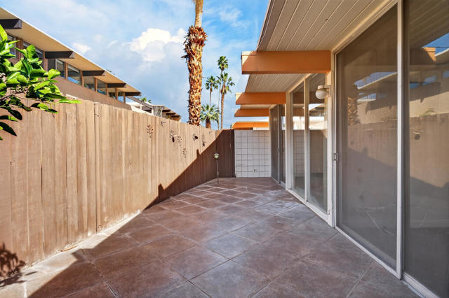 Charming Mid-Century Gem in Iconic Ocotillo Lodge. Single-level unit with no one above, offering privacy and classic Palm Springs style in the historic Ocotillo Lodge--designed by renowned Mid-Century architects Palmer & Krisel. This charming condo is a true celebration of Mid-Century Modern design and makes an ideal pied-a-terre, seasonal rental, or full-time desert retreat.Inside, floor-to-ceiling sliding glass doors in both the living room and bedroom fill the space with natural light and open to a spacious private patio, perfect for morning coffee or evening cocktails under the desert sky. The kitchen includes a refrigerator and a dishwasher. The unit also features its own washer and dryer hookup, a convenient and desirable upgrade within the community.Life at Ocotillo Lodge offers resort-style amenities, including the iconic Champagne Cork-shaped pool, spa, and clubhouse, all set within beautifully maintained grounds. Located just minutes from downtown Palm Springs, you'll enjoy easy access to the area's celebrated restaurants, shopping, and nightlife.The monthly HOA fee includes utilities and services such as electricity, water, trash, cable, Wi-Fi, and common area landscape maintenance. Ocotillo Lodge is also one of the few communities that allows short-term rentals, making this property a highly attractive opportunity for vacation rental investors.