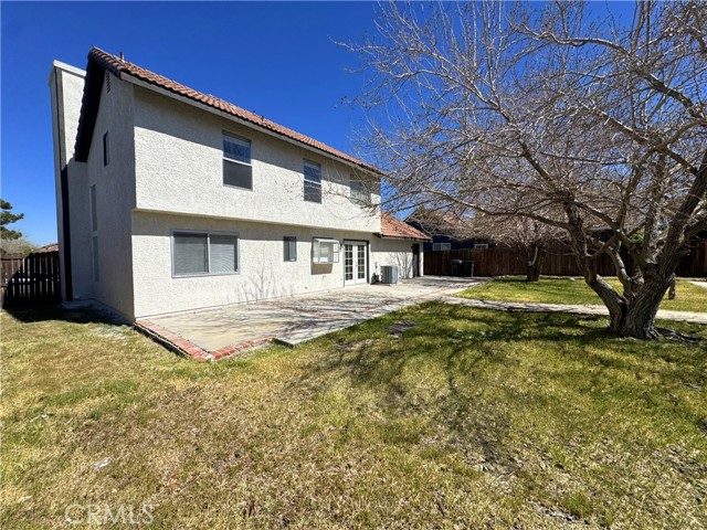 Welcome to this recently refreshed two-story home offering 3 bedrooms and 2.5 bathrooms in a convenient Palmdale location. The property has been recently renovated with interior and exterior paint, a landscape refresh, new carpet, and reglazed kitchen countertops, creating a clean and move-in-ready feel. The main level features a comfortable living and dining room combination with a cozy fireplace, perfect for relaxing or entertaining. The kitchen includes tile flooring, newly painted cabinets, refreshed countertops, and appliances, providing a functional and inviting space for everyday living. A convenient half bathroom is also located downstairs. Upstairs you’ll find all three bedrooms and the remaining bathrooms, including the primary bedroom with its own attached bathroom for added privacy. Step outside to a large backyard with a patio area and plenty of open space—ideal for outdoor gatherings, gardening, or creating your own backyard retreat. The home also features an attached two-car garage and a spacious driveway with additional parking. This property offers great space, recent updates, and an excellent opportunity to make it your own.