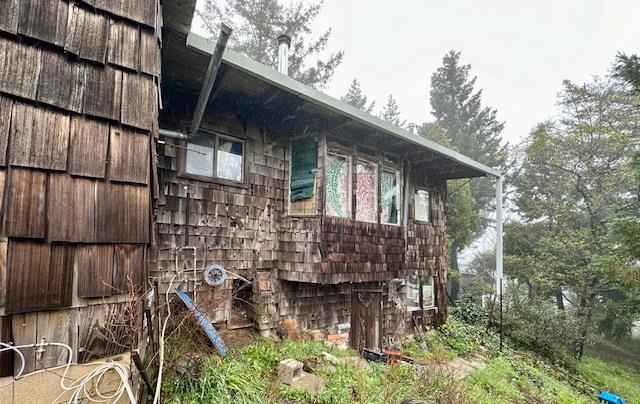 A very unique and overwhelmingly usable property. The 2 story brown house is in need of extensive repair and restoration. There is a majestic view from this house and the porch/yard outside. Solar. The Garage has some interior improvements but the condition is old and dirty but with a thorough cleaning it could be brought back to life. Repairs and upgrades are needed. Massive amount of propane storage and propane refill/delivery in place. The improvements are on record with the tax assessor and there are no violations on the property. There are 2 GIGANTIC flat pads along the main Summit Road with 2 separate driveways (one cement and one dirt). They are large enough for multiple large barns, animals grazing and corals, spacious recreational fields, many campsites, etc. Water leads to them from an underground water tank along the main road. There is a cement water tank currently used as a gold fish pond. There is a very recent survey. Madrones and Fig trees Zoned SU (Special Use)