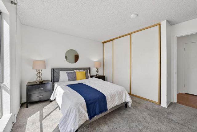 Delightful, secured building/parking and very walkable to shopping, restaurants and even Kaiser Hospital for healthcare professionals that want to live in a safe neighborhood near work. Why rent when you can own an affordable condo within a secured building with a gated parking garage, assigned parking and storage space? The building also offers an elevator and laundry directly outside the unit's front door. Step out onto the balcony with views of the hills and city for a relaxing environment and setting. The living spaces are spacious and the bathroom is updated and well done! Inspection on the unit showcases exceptional maintenance by the longtime homeowner. Rarely available unit in the building due to a highly desirable building and convenient location. The HOA also covers water and garabage. This one won't last long!