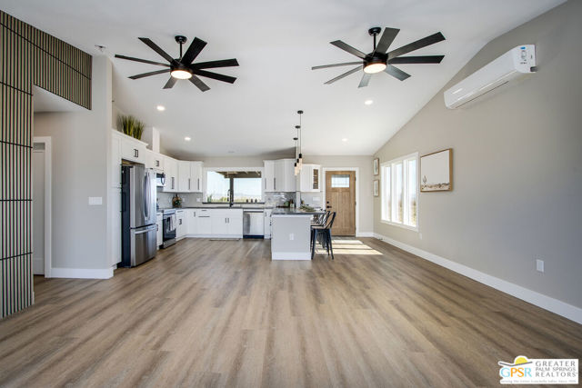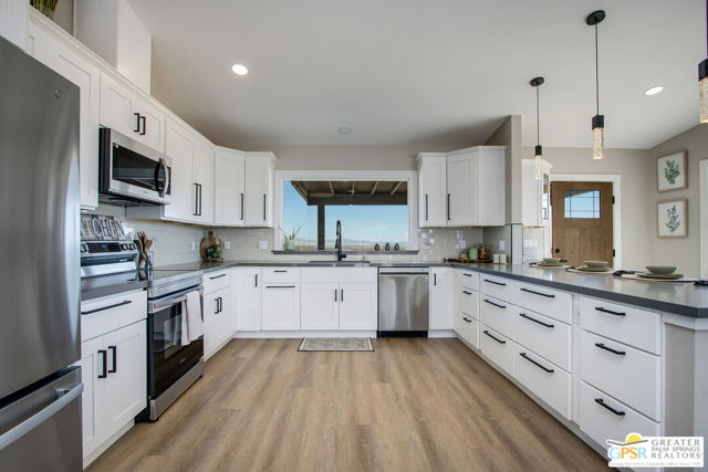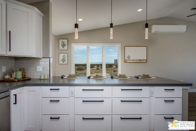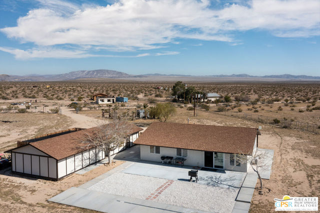 Discover the beauty and tranquility of desert living in Landers. This beautifully remodeled 3-bedroom, 2-bath home welcomes you with a bright, open-concept kitchen and living area perfect for entertaining guests or enjoying peaceful evenings at home. Nearly everything has been upgraded or replaced, making the home feel practically brand new. Improvements include an upgraded septic system, a new electrical panel, and concrete walkways surrounding the home so you'll never have to step in the dirt. High-end vinyl flooring flows throughout the home, complementing a stylish, thoughtfully designed kitchen that is both impressive and functional for everyday living. Step outside and take in the peaceful desert setting with charming views of the surrounding mountains. Situated on over two fully fenced acres, the property offers exceptional privacy along with plenty of room to expand, garden, create outdoor living spaces, or bring your future projects to life. The garage is divided into two separate sections, providing flexible space for parking, storage, a workshop, or hobby area. As night falls, experience one of the high desert's greatest treasures the famous dark skies of Landers. Here, breathtaking star-filled nights create a serene escape that feels worlds away from the city while still being within reach of nearby desert communities such as Joshua Tree and Yucca Valley.