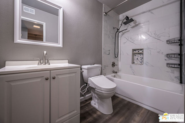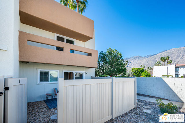 Tucked inside the peaceful, beautifully maintained community of Hermosa Villas, this fully remodeled ground-level condo offers the relaxed Palm Springs lifestyle you have been searching for. Surrounded by beautifully maintained grounds in a prime location, the community has a quiet, resort-like atmosphere while still being just minutes from downtown Palm Springs, shopping, dining, and local attractions. This thoughtfully remodeled 2-bedroom, 2-bath home features an updated kitchen with modern cabinetry, updated countertops, and new appliances, creating a bright and inviting space for everyday living and entertaining. The bathrooms have been completely remodeled as well with new flooring throughout the whole unit. The open layout flows comfortably through the living and dining areas, while large windows and sliding glass doors bring in natural light and create a seamless connection to the private outdoor patio. Step outside to enjoy mountain views and the desert sunshine from your own peaceful patio, perfect for morning coffee, relaxing afternoons, or evening sunsets. Hermosa Villas offers beautifully maintained grounds, a sparkling community pool and spa, and covered parking, all within a serene setting that private yet conveniently located. With its tasteful remodel, calm environment, and desirable Palm Springs location, this home is ideal as a full-time residence, seasonal getaway, or investment opportunity. Owner financing possible. Ask your agent for details.