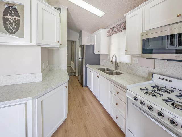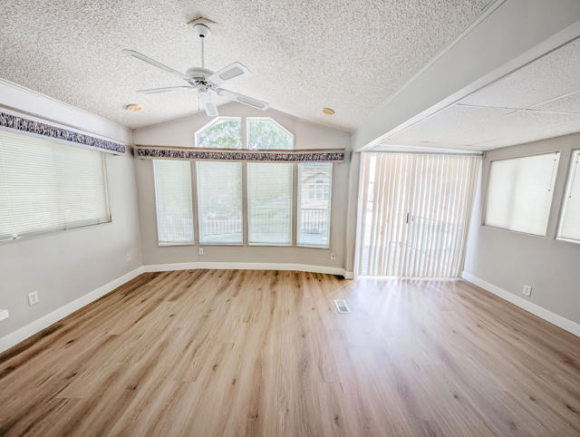 This property ensures both privacy and peace, highlighted by mature fruit trees that offer year-round enjoyment. The well-kept 1993 Fleetwood Park Model spans about 700 sq. ft., including one bedroom, one bathroom, and a spacious laundry and storage area. Upgrades feature luxury vinyl flooring, new carpet in the master bedroom, quartz countertops, a new hot water tank, and a spa-inspired renovated bathroom. Newly remodeled and ready for move-in, the home boasts a comprehensive water filtration system for clean drinking water and an insulated roof for extra protection. A spacious front deck provides sweeping views of hills and desert landscapes, while the private rear courtyard offers easy access to the fruit trees. Located in Caliente Springs 55+ Resort, this home is perfect as a retreat or permanent residence and includes amenities such as a 9-hole golf course, hot mineral springs pool and spas, eight pickleball courts, tennis courts, a driving range, and more. Please note, the lot is not owned, and the monthly space rent is $673.