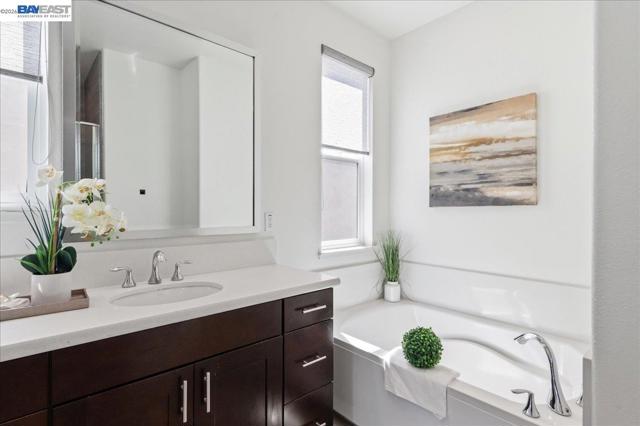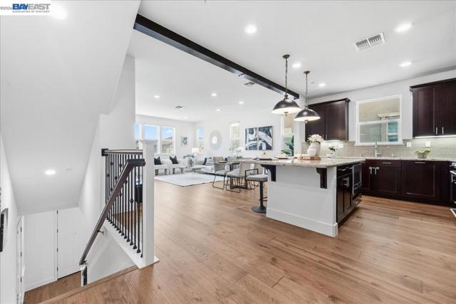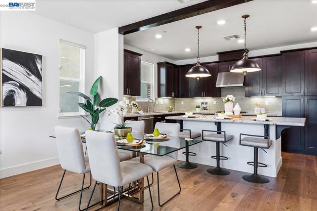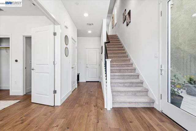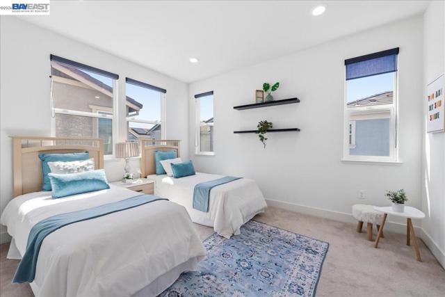 Experience the pinnacle of modern living in this stunning, North-East facing home in East Dublin’s coveted Irongate community. Bathed in natural light, this 4-bedroom, 4-bathroom residence offers unparalleled functionality throughout and sweeping mountain views from the third floor. The thoughtfully designed layout features a private bedroom and full bath on the first level, while the second floor boasts an open-concept living area, gourmet kitchen, and another bedroom with a full bath. The top floor is a true retreat, housing the primary suite and an additional bedroom. One bedroom and full bath at each floor takes convenient living to the next level. Much of this home shines with brand-new hardwood flooring, fresh designer paint, and modern lighting throughout. Premium upgrades include designer cabinets, a water softener, and a private side yard with sleek, modern flooring. Location is everything: you are within walking distance to top-rated Cottonwood Creek K-8 and Emerald High School, and just moments away from Fallon Sports Park, two community parks, Target, Starbucks, and easy I-580 access. No Mello-Roos, a rare and valuable advantage. This well-lit, solar-powered masterpiece blends luxury and convenience in a way that is rarely available. A must see.
