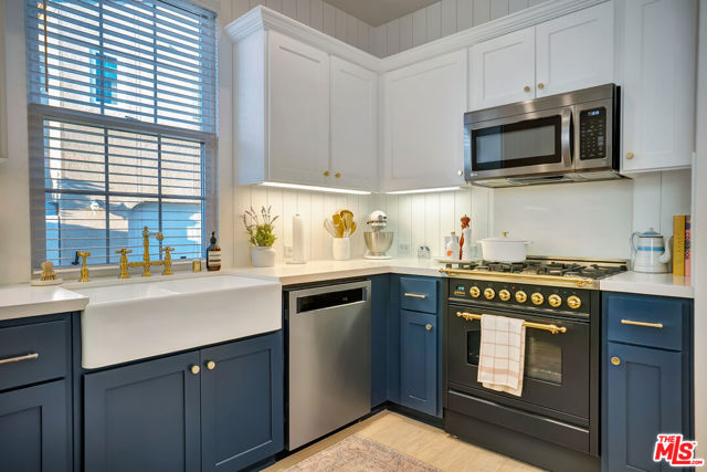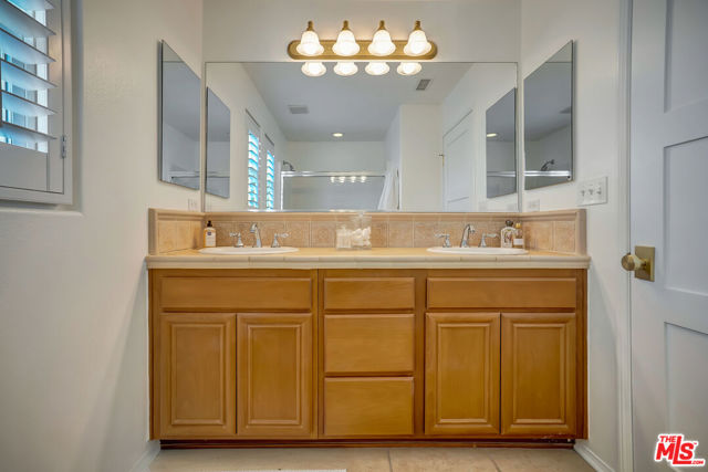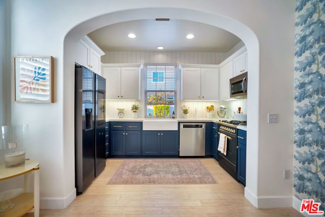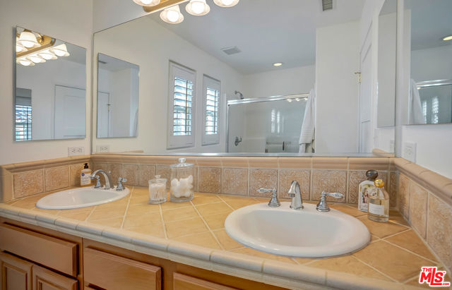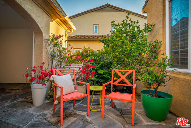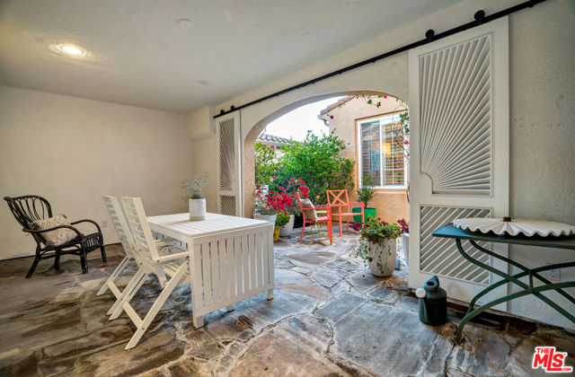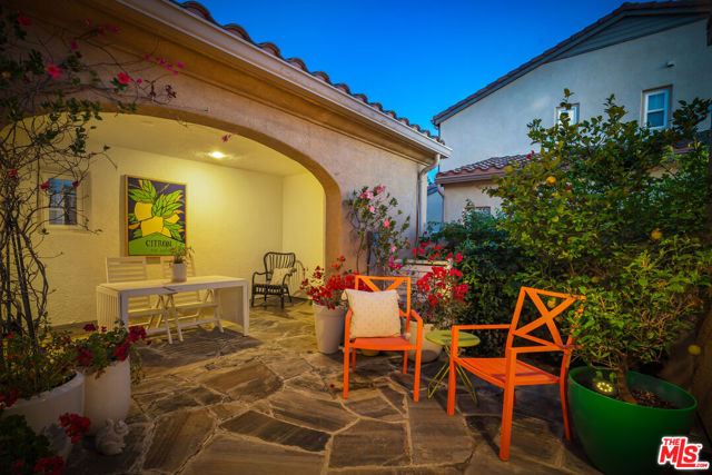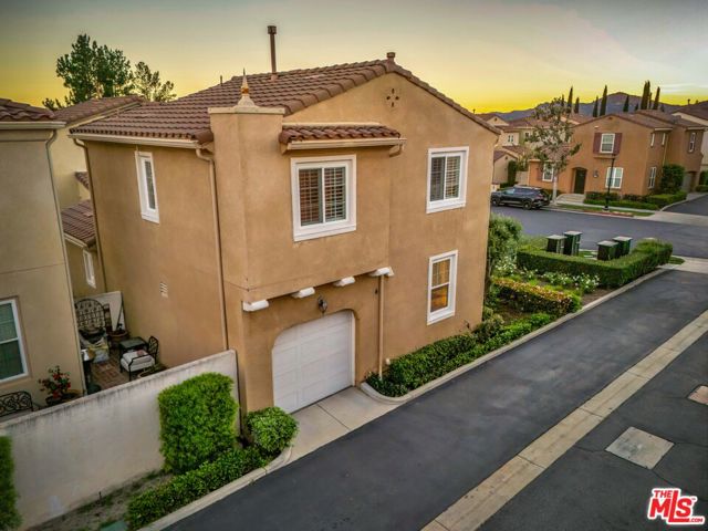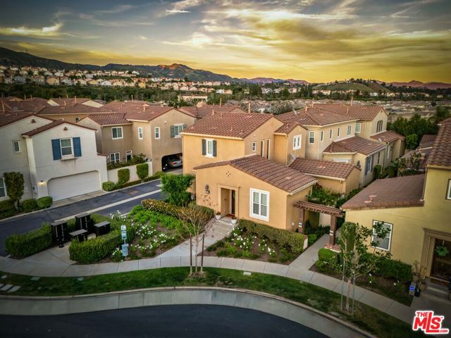 Welcome home to this rare and beautifully renovated 2-bedroom, 3-bathroom designer residence where no detail has been overlooked and no expense spared. Every corner of this home has been thoughtfully curated, creating a space that exudes warmth, charm, and unmistakable pride of ownership. Homes like this rarely come along. Set back from the street on a quiet cul-de-sac, the home welcomes you through a beautifully landscaped front yard and into an inviting entryway. Inside, graceful archways and carefully selected finishes immediately showcase the meticulous attention to detail that carries throughout the home, creating an atmosphere that feels both refined and welcoming. The recently renovated kitchen is truly a chef's dream, featuring custom cabinetry, elegant Carrara quartz countertops, and updated appliances, including a stunning ILVE Nostalgia dual-fuel range with brass hardware. Throughout the home, thoughtful design elements such as shiplap paneling, shaker-style wainscoting, crown molding, and custom millwork add architectural character and timeless style. New interior doors, brass hardware, plantation poly-core shutters, and electric fireplaces in both the living room and second bedroom further elevate the home's sophisticated aesthetic. Upstairs, both bedrooms serve as private ensuite retreats, each with its own bathroom for added comfort and privacy. The primary suite features a walk-in closet along with a striking floor-to-ceiling built-in cabinetry system that offers both functional storage and beautiful design. Recessed lighting, built-in shelving, and carefully chosen decorative details create a polished and inviting atmosphere throughout both rooms. The charming patio can be accessed directly from the living room or from the attached two-car tandem garage, offering a seamless indoor-outdoor lifestyle. This serene outdoor space features a covered dining area, mature lemon and kumquat trees, and established landscaping that creates the perfect setting for entertaining, relaxing, or enjoying meals al fresco in true California style.Additional upgrades include new toilets and brass fixtures in all bathrooms, a Ring video doorbell, and enhanced garage storage with a dedicated laundry area. Nestled in the desirable Porter Ranch foothills on a peaceful cul-de-sac, this exceptional home offers a perfect balance of privacy, luxury, charm, and convenience. Surrounded by scenic landscapes and quiet streets, the property is just minutes from neighborhood parks, The Vineyards at Porter Ranch, and outdoor recreation at Santa Susana Pass State Historic Park and Aliso Canyon Park. Easy access to the Ronald Reagan Freeway (I-118) makes commuting across the San Fernando Valley effortless. This is truly a special home you won't want to miss.